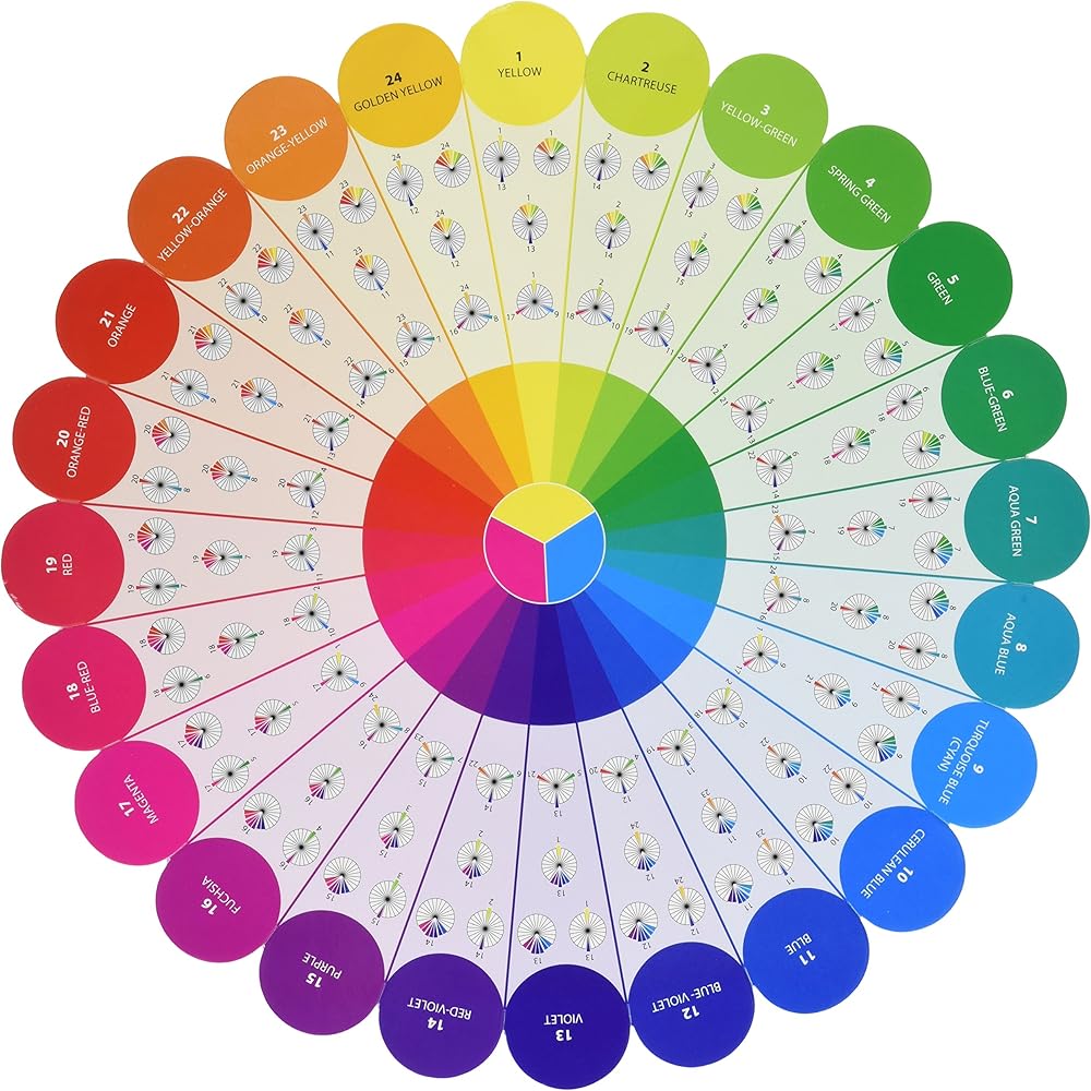 - Essential color wheel companion- create perfect color combinations every time with this wheel shape slotted for easy color auditioning 24 color wedges