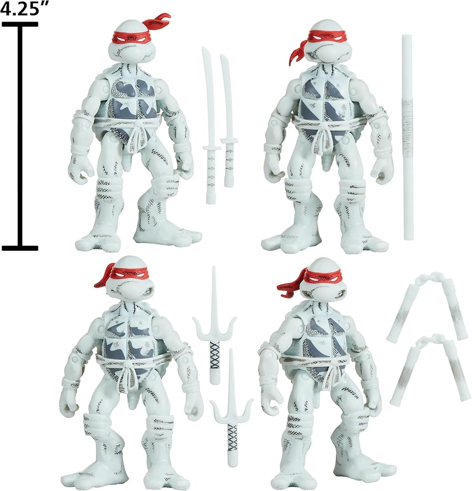 Back in 1984, a single 40-page black and white underground comic redefined the comic book industry and created a world-wide phenomenon. For 40 years, the Teenage Mutant Ninja Turtles have entertained and thrilled legions of fans across the globe—and they're still going strong! This unique 4” Black & White Comic Book Michelangelo figure is authentically designed, includes his signature weapons, and comes packaged in retro comic book graphics.