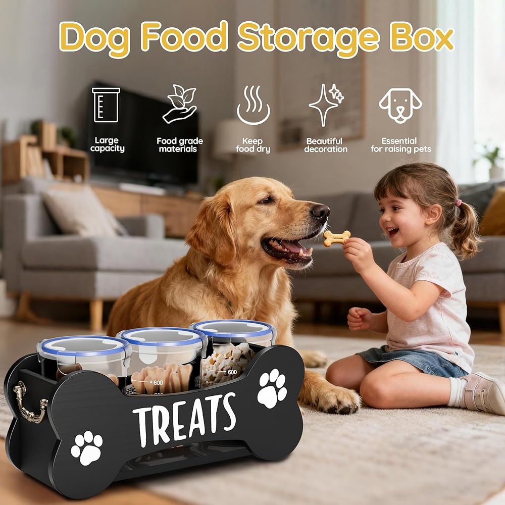 تخزين وافرة ومحكمة : مع ثلاثة جرار كبيرة 1000 - مل ، لديك مساحة كبيرة لتخزين العديد من علاجات الكلاب مثل jerky و kibble و bones. يضمن الهواء - الأغطية الضيقة أن تظل العلاجات جديدة لفترة أطول