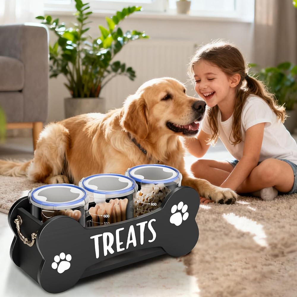 تصميم عملي وصديق للحيوانات الأليفة : تم تصميمه مع وضع مالكي الحيوانات الأليفة في الاعتبار ، وتجمع هذه المجموعة بين الوظائف والراحة. إنه لا يساعد فقط في الحفاظ على علاجات الكلب منظمة ولكنها تضيف أيضًا لمسة من السحر إلى غرفتك