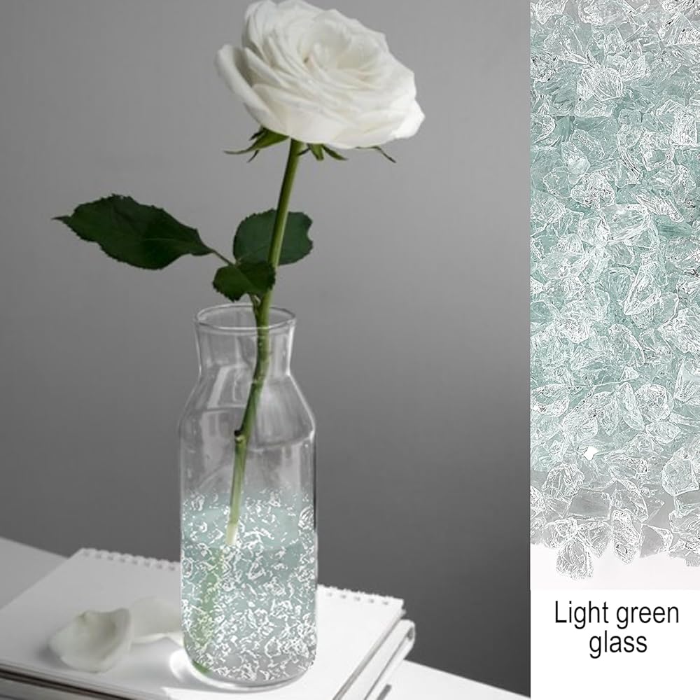 MARIWEI 0.9 Pound Resin Art Glass, Crushed Glass for Crafts, Fire-Resistant Glass Gravel, Aquarium Garden, Vase Filling, Candlestick Decorative Small Stones(Light Green)