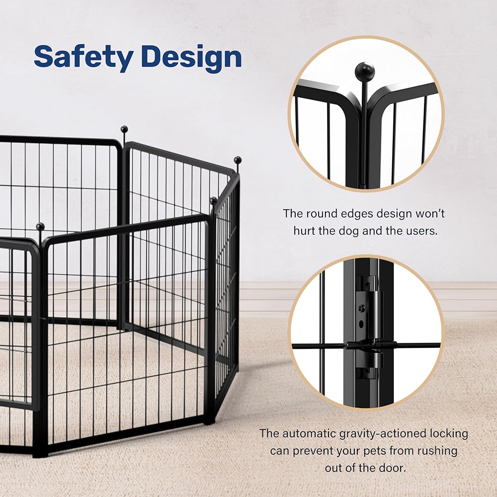 【ترقية دولة Dog Playpen】 Dog Playpen Indoor تعتمد تصميم قفل باب الجاذبية ، أكثر أمانًا وأكثر ملاءمة. مصنوعة من الألواح المعدنية الثقيلة والمخاطر مع الطلاء الأسود ، غير سامة ، مضادة للانتعاش. يضمن استخدام لفترة طويلة بغض النظر عن الداخلية أو الخارجية.