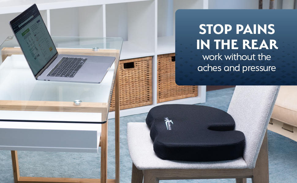 سوبر داعم - الجلوس لفترات طويلة من الوقت يمكن أن يؤدي إلى أضرار جسيمة! لهذا السبب تم تصميم وسادة بعقبنا لإعطاء عظمة الذيل ، أسفل الظهر ، وجعص الدعم الذي يحتاجونه للوصول إلى يوم العمل.