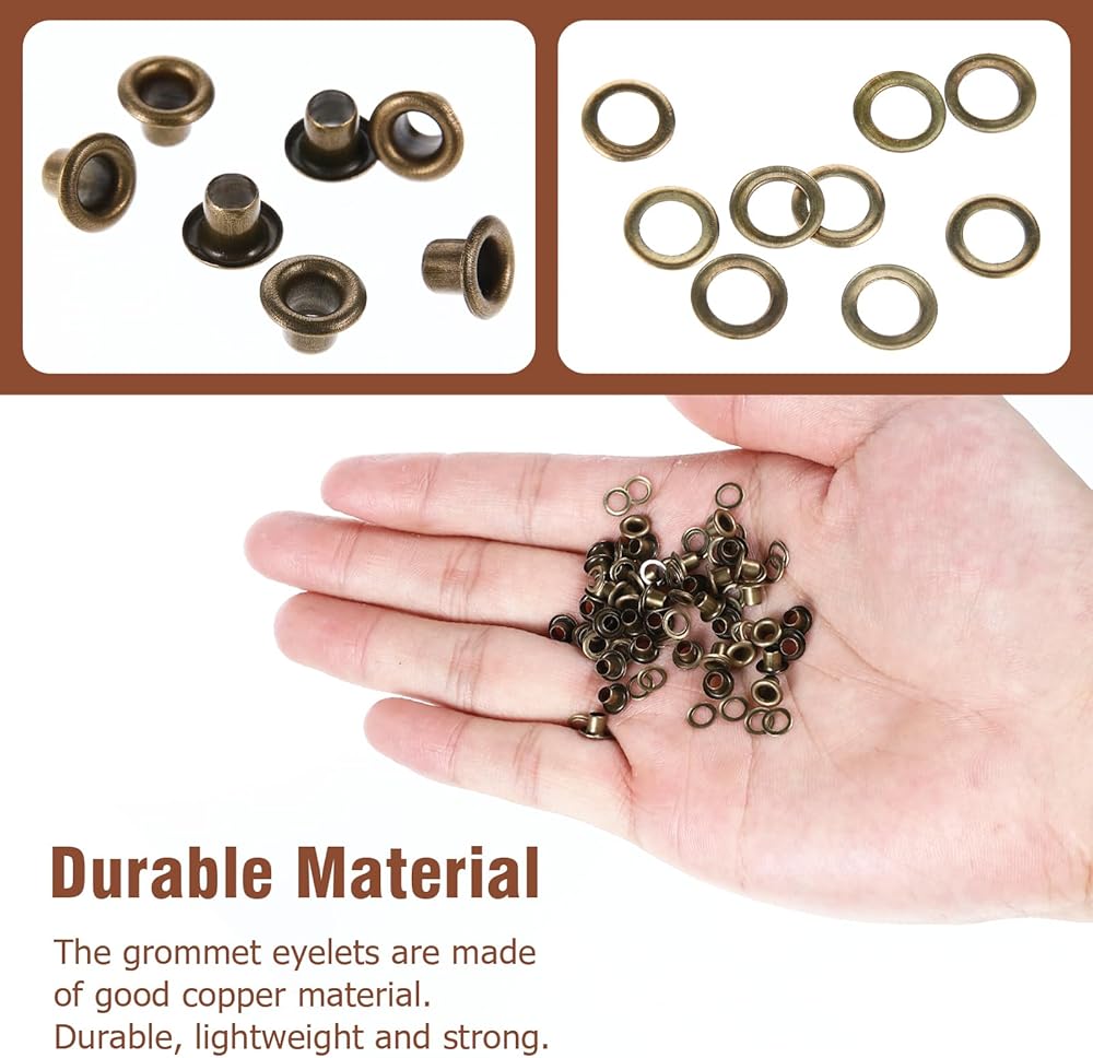 【Durable Material】These eyelets are made of good metal, which makes these eyelets and grommets hard and durable, so they are rust-proof, corrosion-resistant, and can be easily unfolded to good effect without damage or cracking.