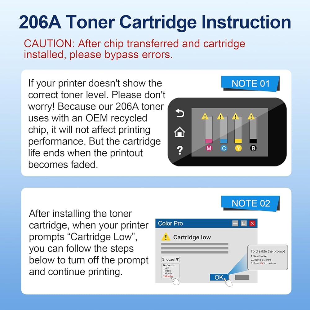 • مع Chip: تحتوي Xinctoner المتوافقة مع حزمة HP 206A Toner Cartridges 2 على رقائق ، لا حاجة لإزالة الرقاقة الأصلية القديمة وتثبيتها على خرطوشة الحبر الجديدة. ارتكبتك بملحقات متينة ، وطباعة سلسة ، ألوان نابضة بالحياة ، نص واضح ، مقاومة تتلاشى