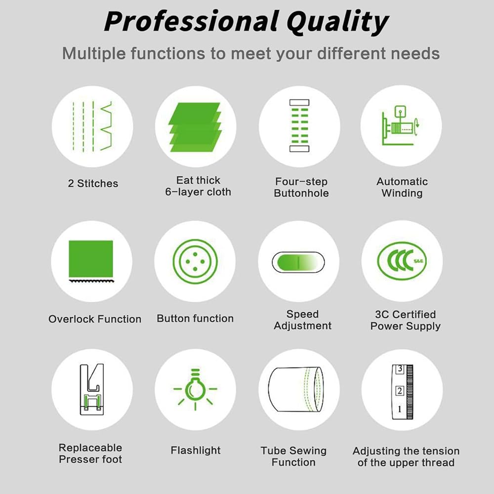 【خياطة أكثر سلاسة】 أرقام المقبض وأنماط الخياطة تتوافق مع بعضها البعض ، مما يتيح لك طريقة أكثر سهولة لاختيار! أحدث آلة الخياطة أكثر سلاسة من الإصدارات القديمة الأخرى من آلات الخياطة والخيط المزدوج والسرعة المزدوجة ، مع إعادة الترجيع التلقائي وإعادة الاتجاه الإبرة ، لا مربى الخيط ، لا إبرة مكسورة ، القضاء على المخاوف والمشاكل التي قد تسببها آلات الخياطة القديمة الأخرى لك.