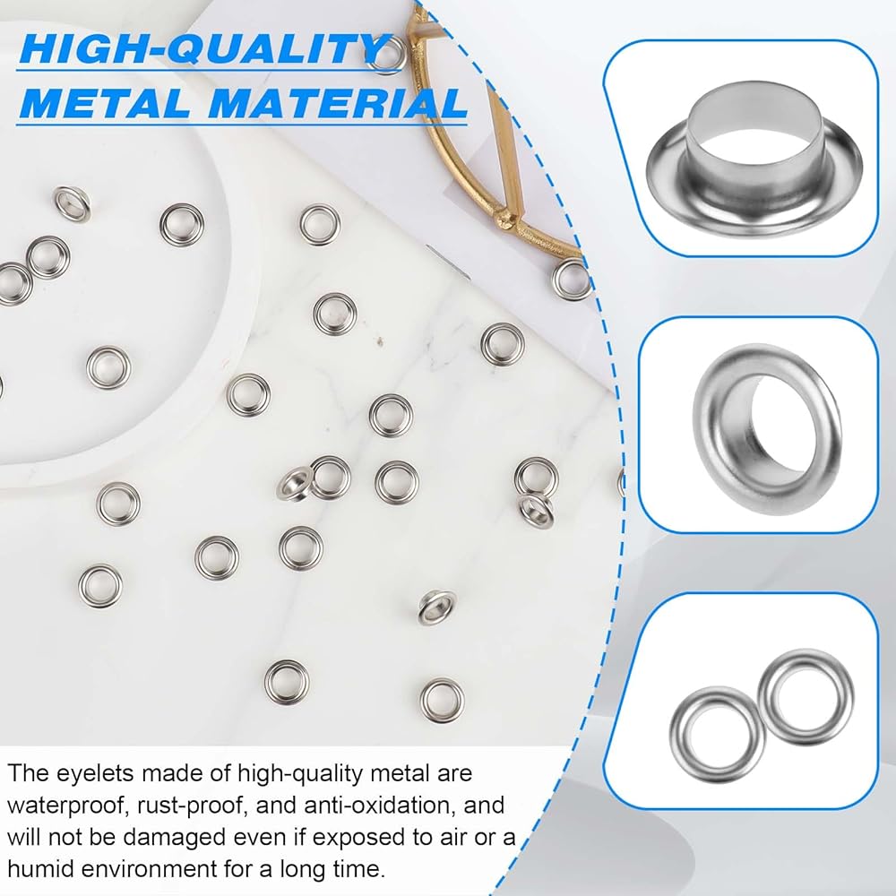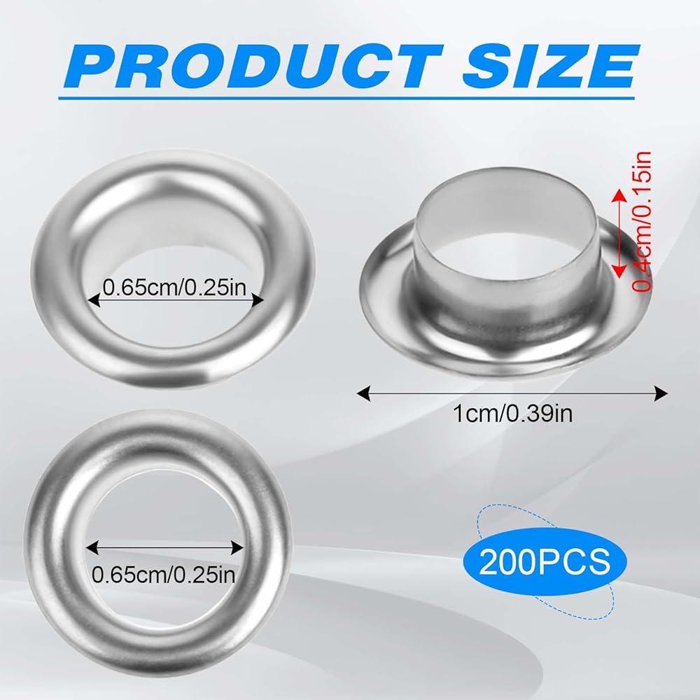 【Suitable Size】The inner hole diameter of the thickened eyelet set is about 6.5mm, and the outer diameter is about 10mm.Each binding eyelet is inspected and guaranteed for its fit, finish, and quality.