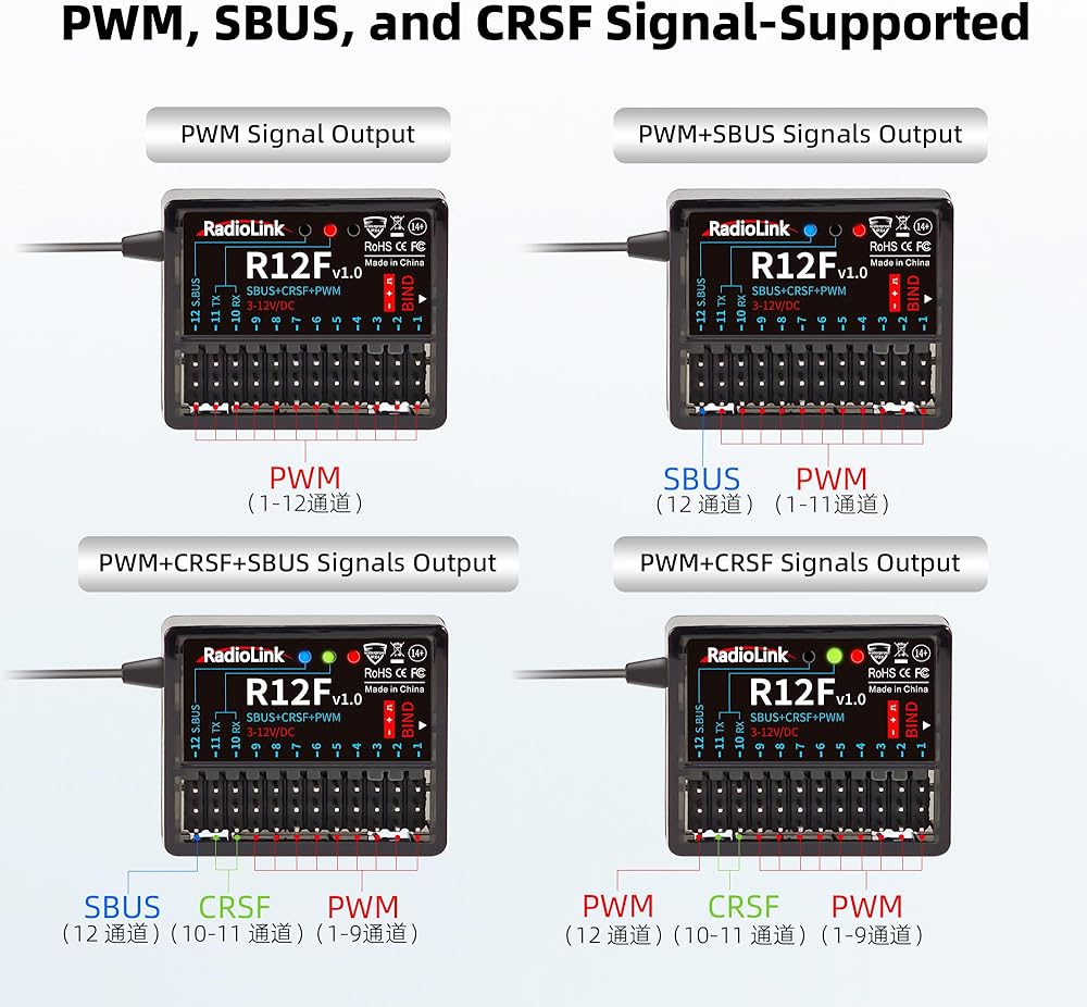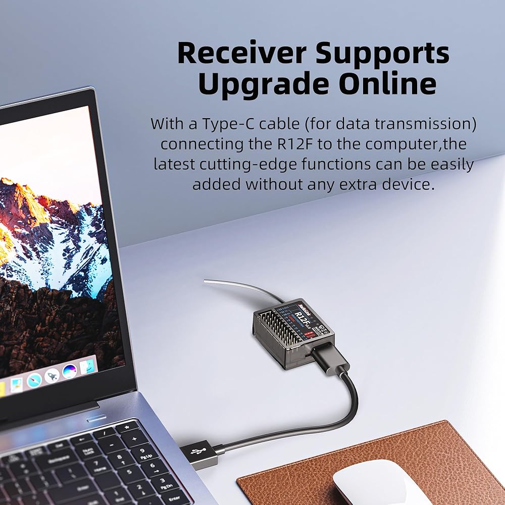 【الوظائف التي تمت ترقيتها】- PWM و SBUS و CRSF المدعومة من إشارة ، يمكنك تخصيص وضع إخراج الإشارة كاحتياجاتك. يدعم جهاز الاستقبال الترقية عبر الإنترنت ، مع وجود كبل Type-C (لنقل البيانات) الذي يربط R12F بالكمبيوتر ، يمكن إضافة أحدث وظائف متطورة بسهولة دون أي جهاز إضافي.