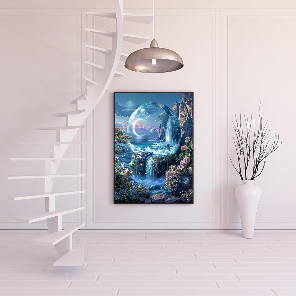 • 【Colorful Diamond Painting】5D DIY moon waterfall diamond painting kits for adults is meticulously crafted to deliver unparalleled quality.With a spacious 11.8x15.7 in canvas,every intricate detail of your diamond art kit can be showcased.The diamonds included in the kit are precisely cut for uniformity,creating a visually stunning masterpiece