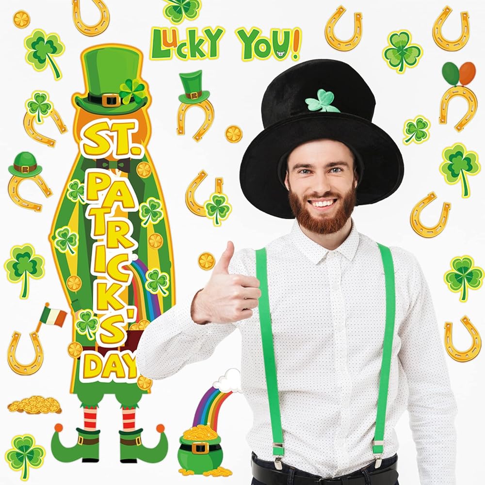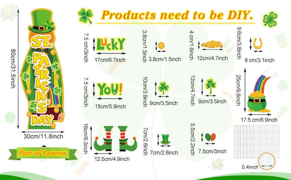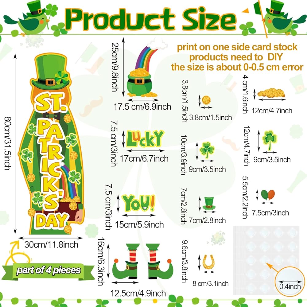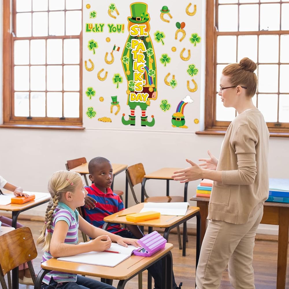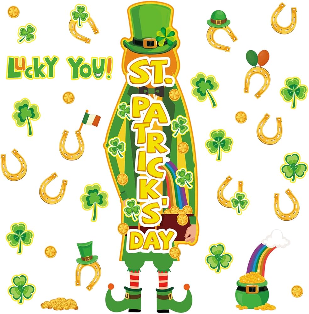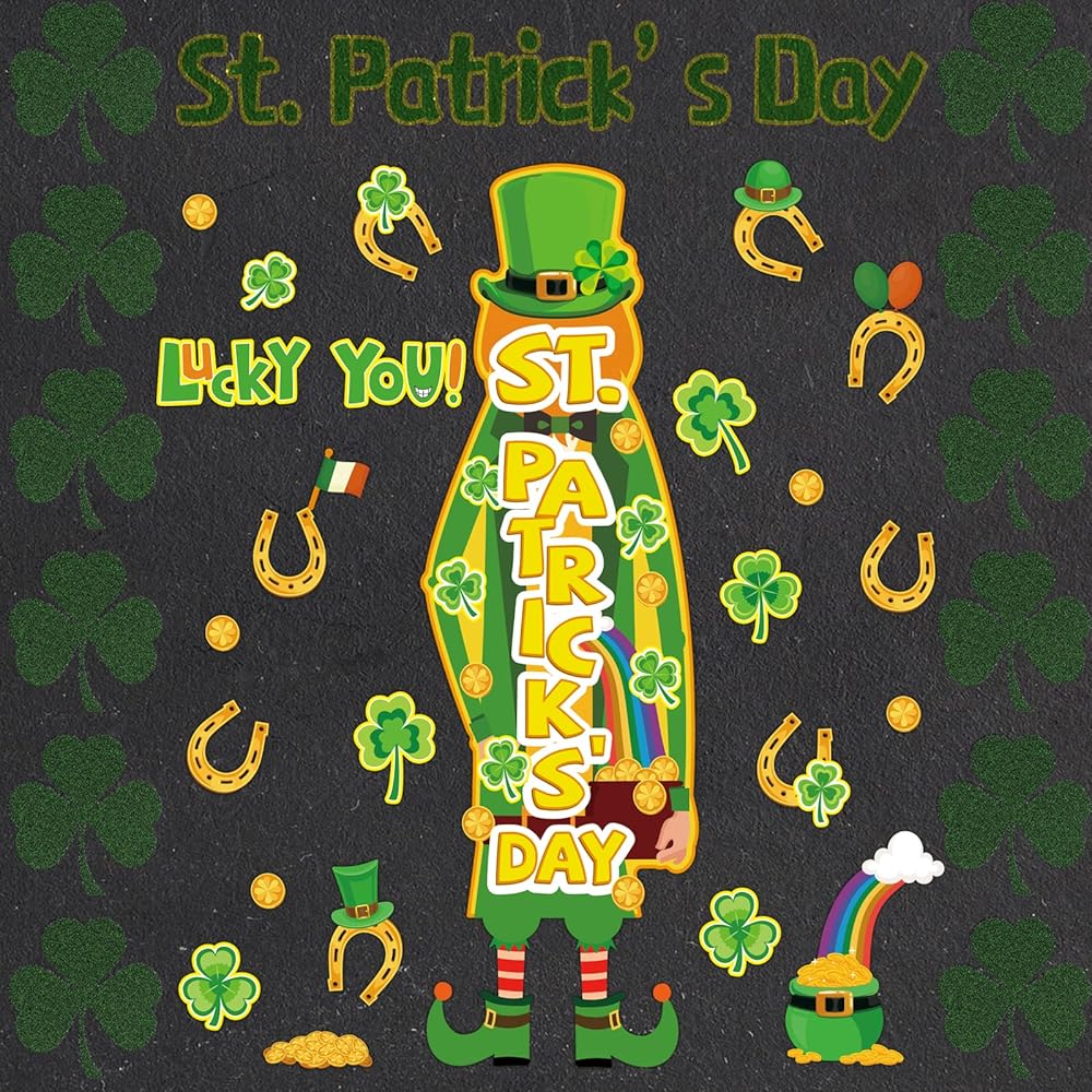 تشمل مجموعة زخارف ألواح Board Decortings في St. Patrick Day: ستحصل على 42 قطعة من قواطع ألواح الإعلانات ، كل مجموعة تأتي مع 100 قطعة من نقاط نقطة الغراء ، مع عناصر موضوع ، مثل Gnome's Gnome ، Golden Horseshos ، Clovers ، Rainbow ، القيثارة ، Shamrocks وما إلى ذلك ، والتي تجعل قواطع ألواح نشرة الفصول الدراسية هذه مناسبة لتزيين الجدران ولوحات النشرات والأبواب والمكاتب