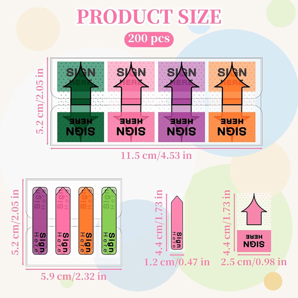 • Versatile and Color-Coded Organization: Our 200PCS Sign Here Flags offer a practical solution for document management with a set of 100 large stickers and another set of 100 small stickers, each in four distinct colors: green, pink, purple, and orange. The large tabs measure 4.53X1.97'' and the small tabs measure 0.47X1.73'', providing options for different docume