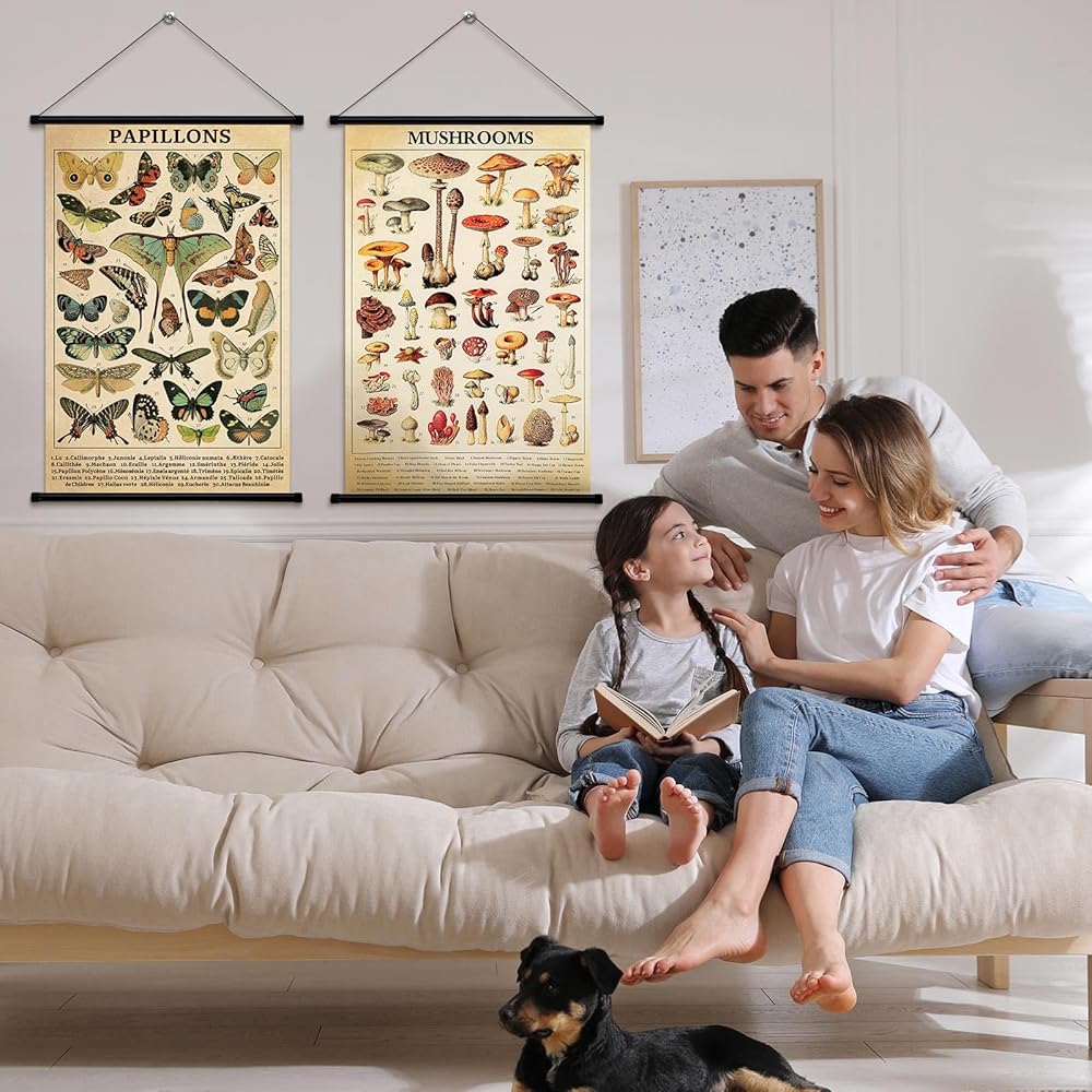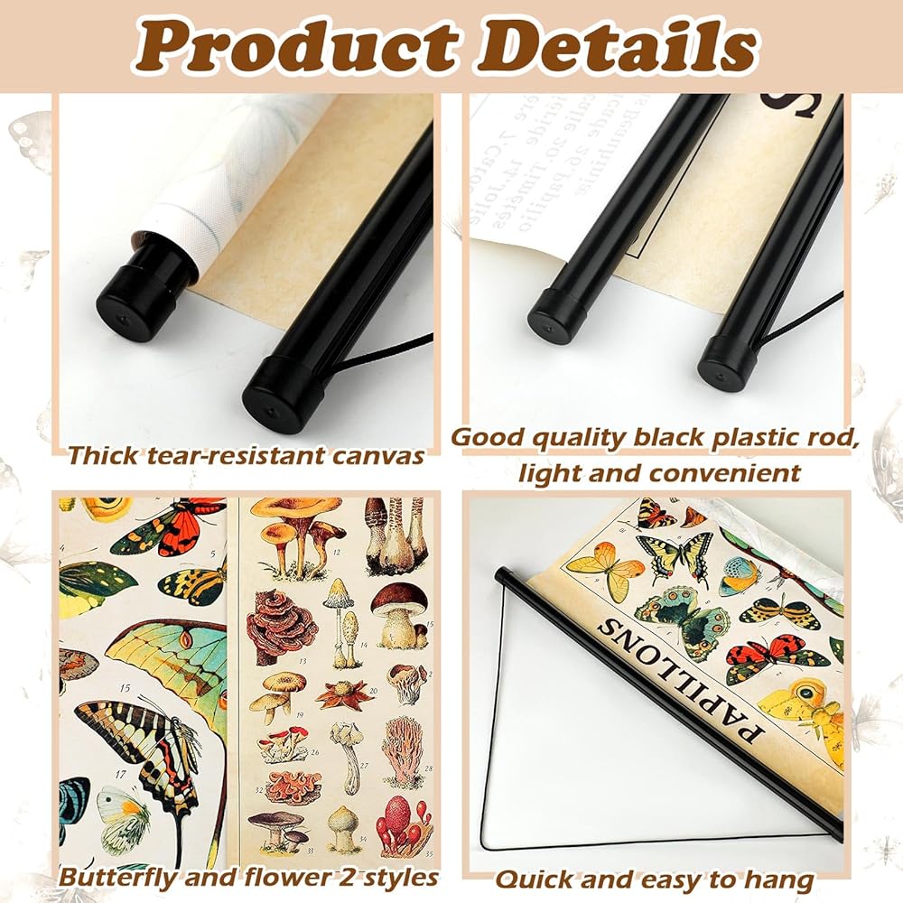 • Distinctive Design: the vintage mushroom poster prints with a wide range of different mushrooms and flowers in various shapes, vibrant in colors, with name notes underneath for an interesting design that gives you a vintage feel
