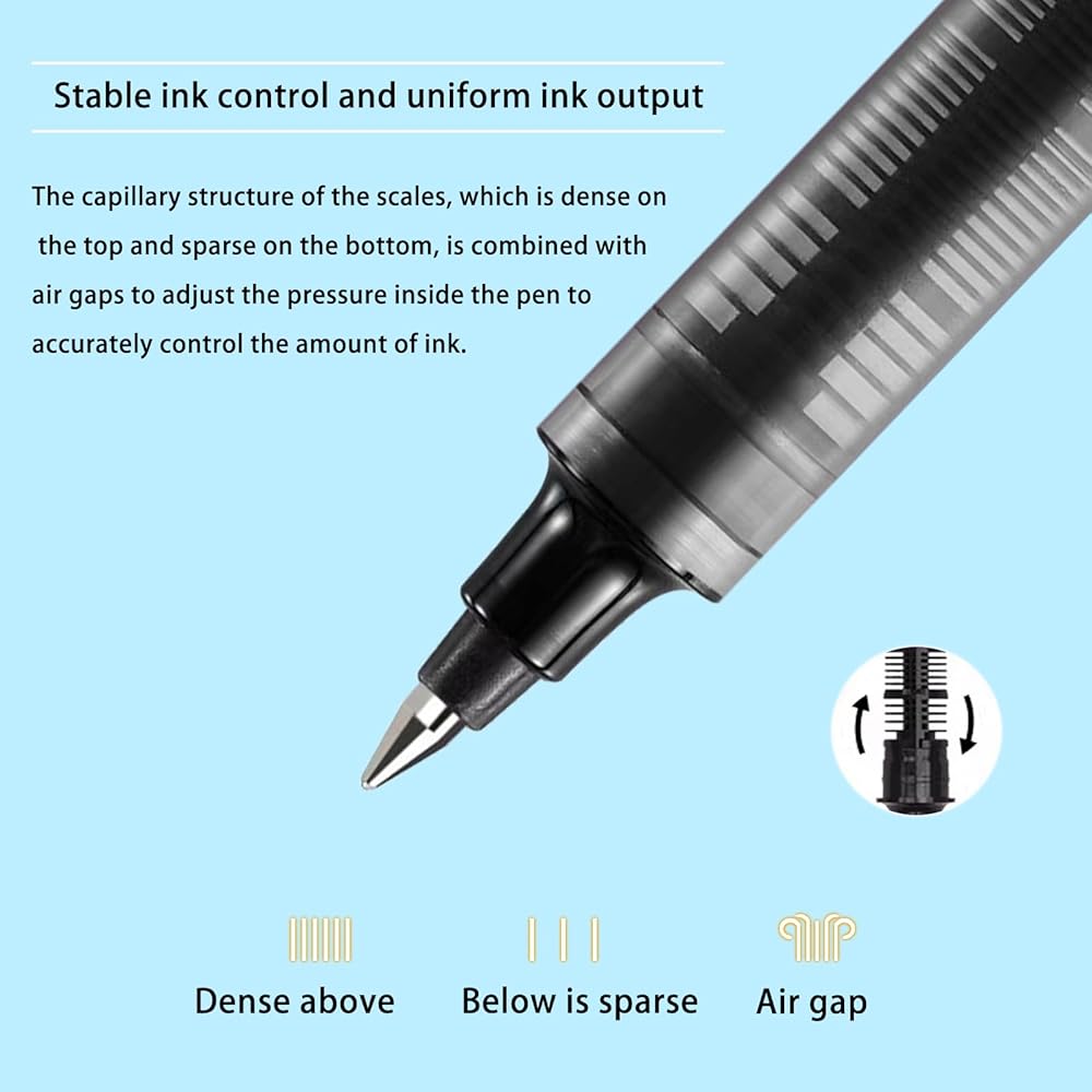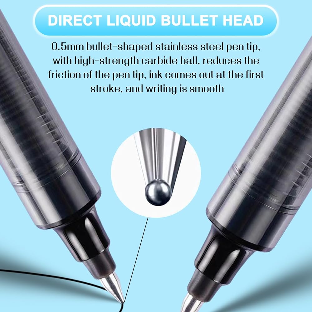 Experience the smooth, effortless writing of these liquid ink pens with a 0.5mm fine point bullet tip. Crafted with premium Japanese Mikuni ink, they offer a quick-drying, waterproof formula that won't smudge or stain your hands. The tungsten carbide ball ensures exceptional durability and a consistent ink flow for a rich, bold stroke. Perfect for everyday writing tasks, these pens glide across the page with a satisfying feel. With a large ink reservoir, you can write for an impressive 1000+ meters (3280+ feet) before needing a refill. Available in a classic black ink, this pens is an excellent choice for those seeking a reliable, long-lasting writing experience.