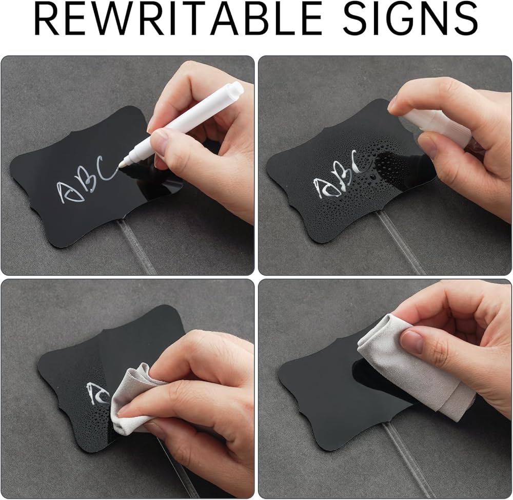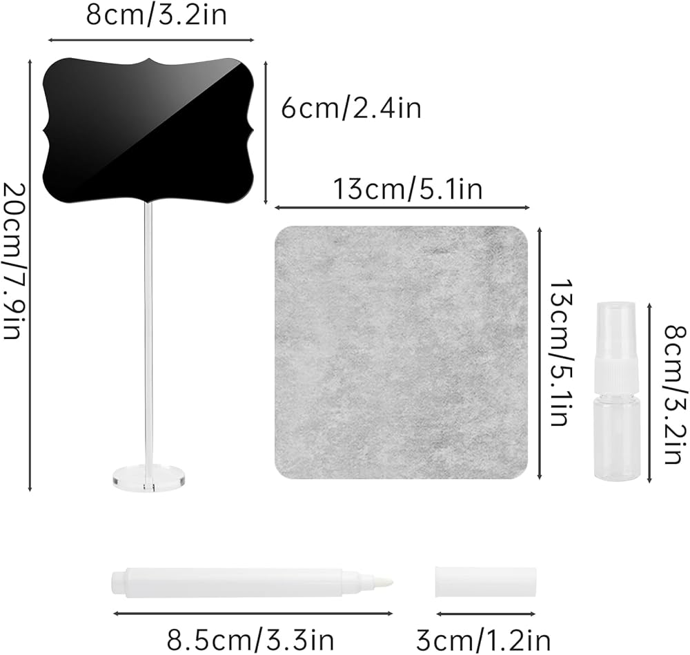 Package Contents: This 10-piece mini acrylic chalkboard set includes 1 whiteboard marker, 1 spray bottle, and 1 wiping cloth, ensuring you have all the essentials to showcase messages or labels with ease.