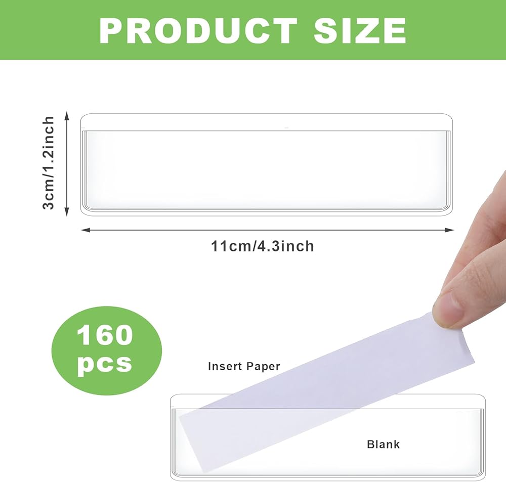 【What You Will Receive】- You will get 160 pcs label holders adhesive; label holder self adhesive measures approximately 1.2 x 4.3 inches; sufficient quantity and suitable size to meet your daily use and replacement needs.