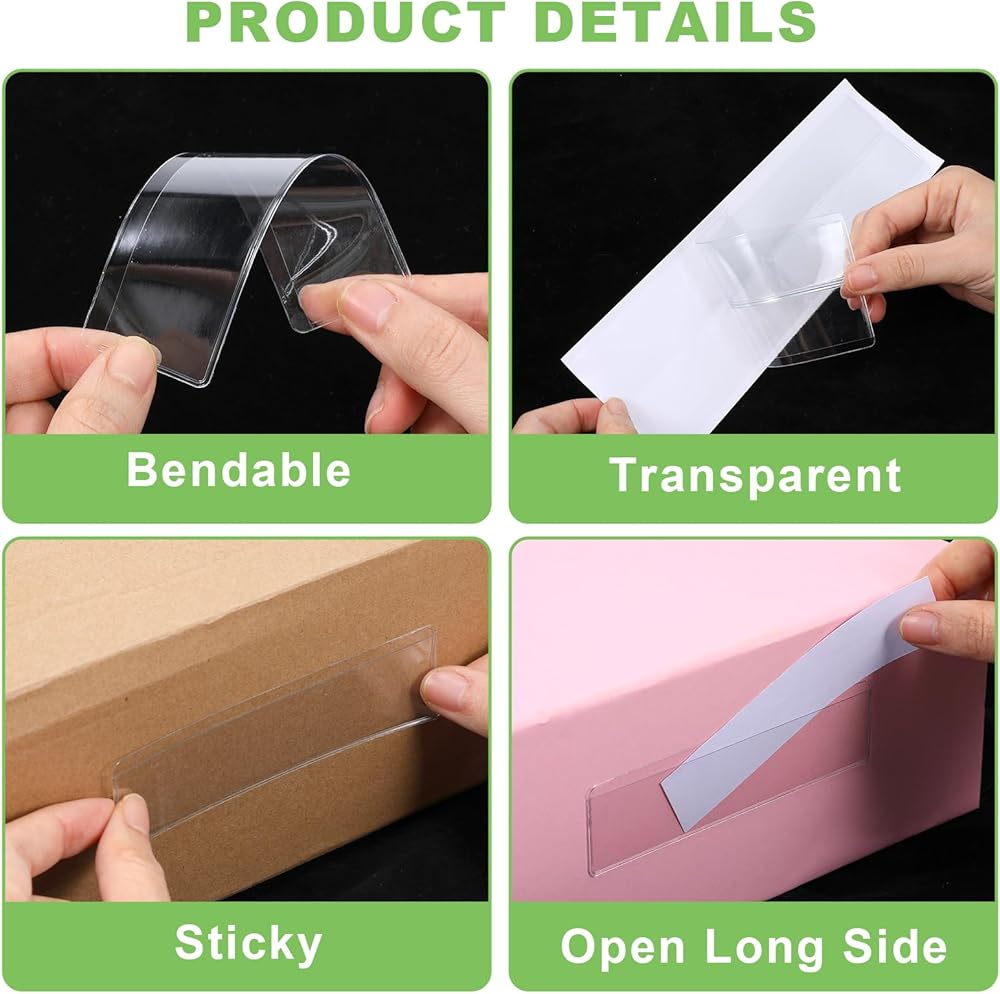 【Transparent Appearance】- The plastic adhesive label holder is transparent, so you can clearly identify the inner label through the pouch, and it can also prevent dust and water from damaging the inner label, making your life more convenient.