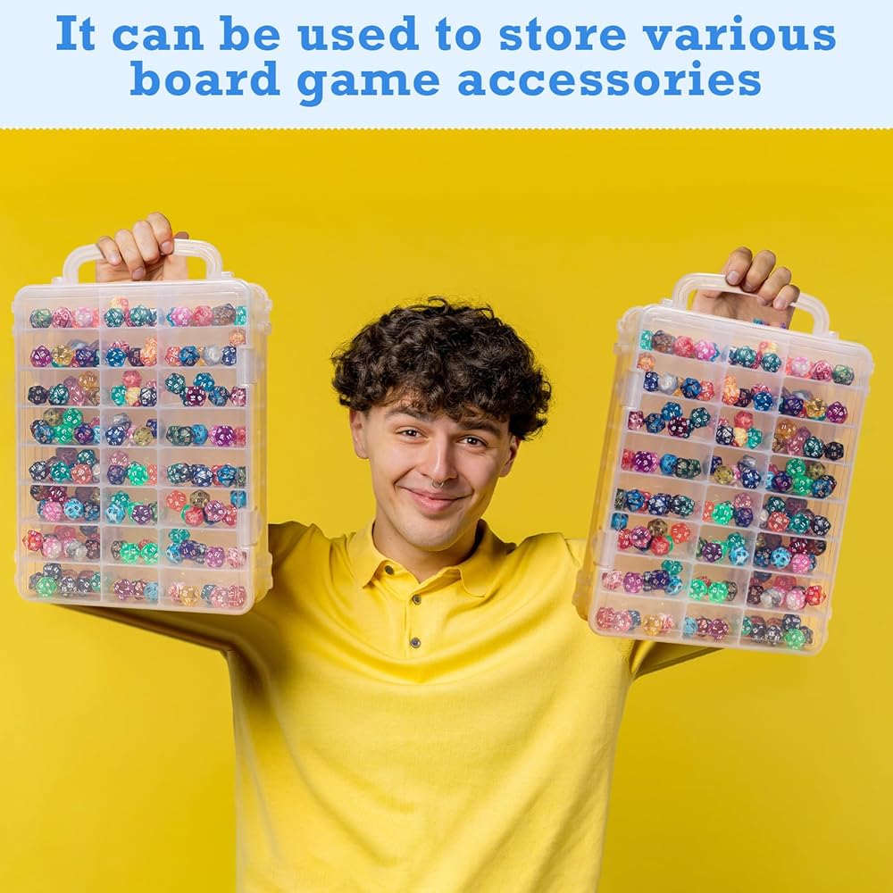 Aoriher Dice Storage Case متوافق مع DND DICE ، كل فواصل قابلة للإزالة تصل إلى 830 DISE ، حامل النرد الشفاف مع منظم عرض DICE DICE لألعاب طاولة لعب الأدوار (حزمة واحدة)