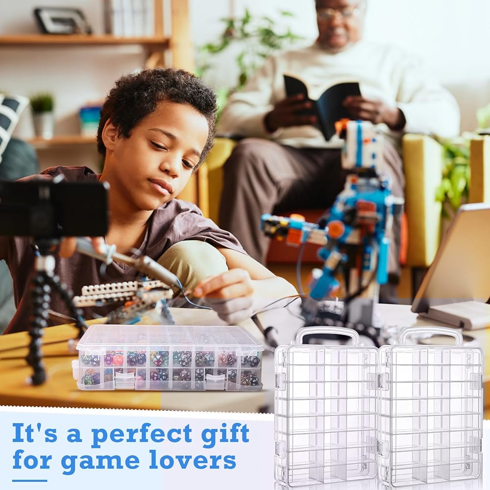 Space Saving Design: the dice storage cases designs with inside removable dividers; You can remove the lid to change the size of the slot to meet your needs; And then it allows you to sort a variety of dice, these dice storage case maximize storage capacity while saving space and can hold up to 830 dice; The dice storage case has a double sided opening, which makes it easy to collect and store all kinds of dice without them falling out