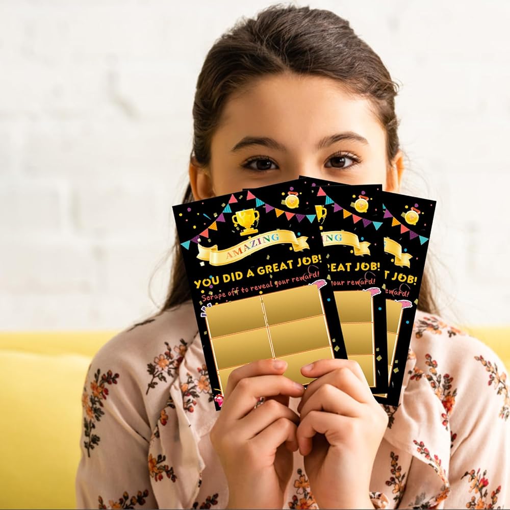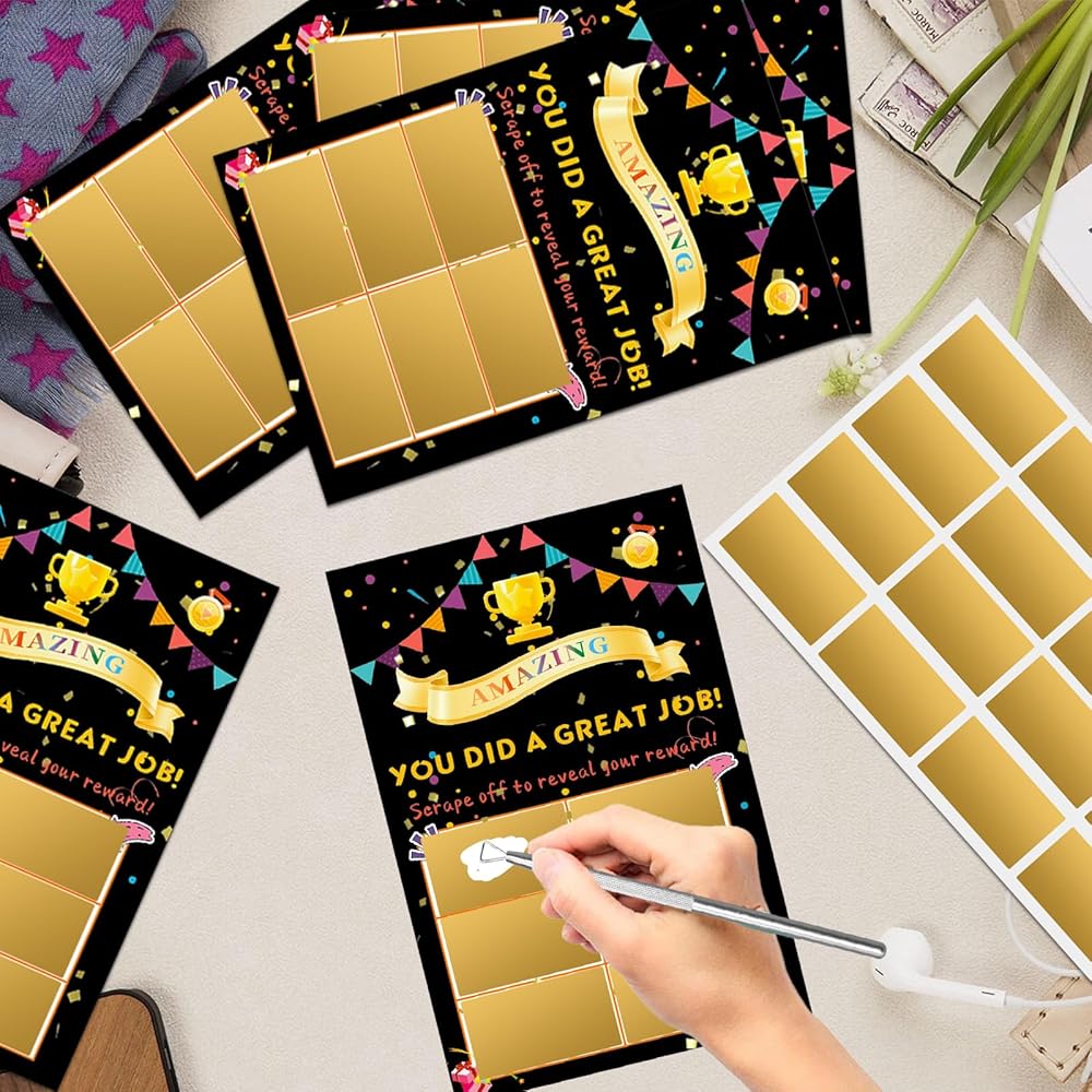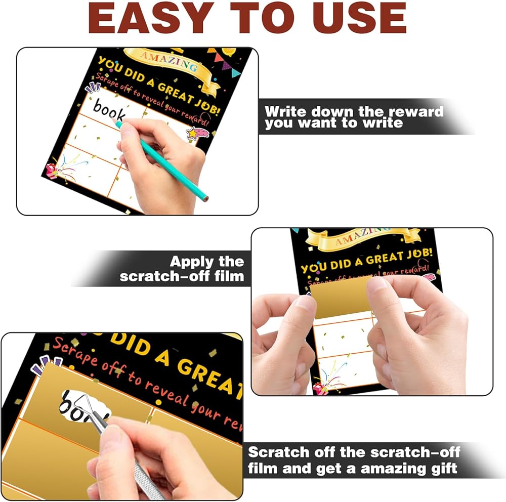 【Wide Application】The scratch off cards is very suitable for classroom reward activities. Scratch it and you will get a prize to motivate students' positive behavior. In addition, this DIY scratch card can also be used for family gatherings, party gifts, handmade gift cards, etc., which will be a very meaningful gift.