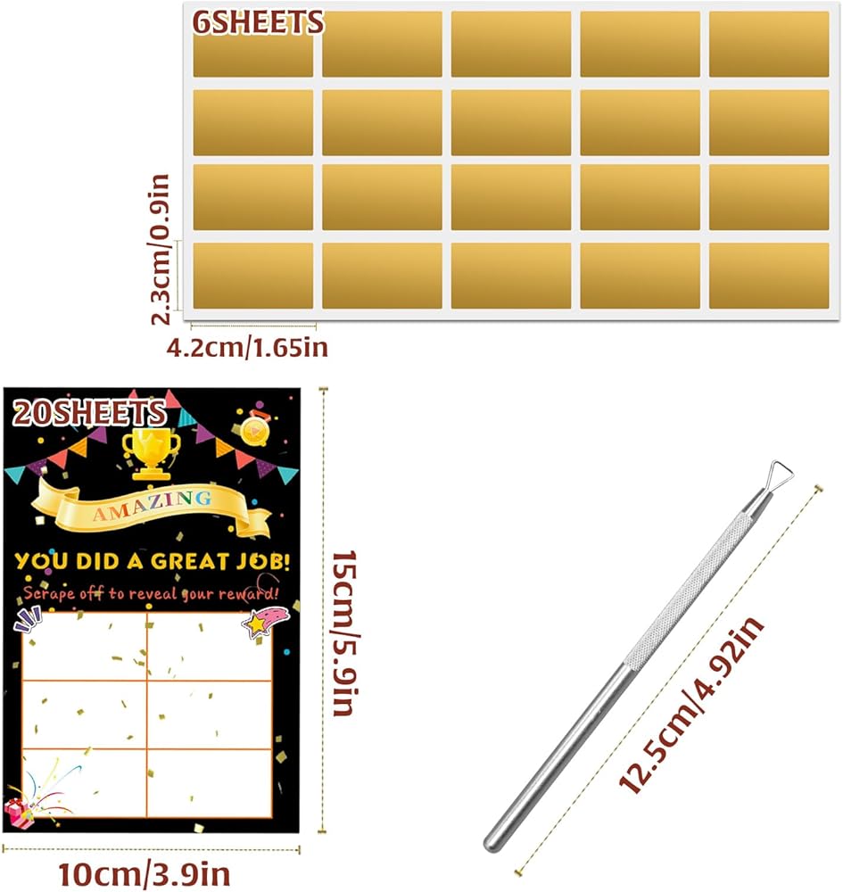 【What You Will Get】You will receive 20 scratch cards, 6 scratch films (20 small sheets each) and a scratch stick, which are enough to meet your needs. If you find any problems with our products, please contact us in time and we will provide you with a reasonable solution.