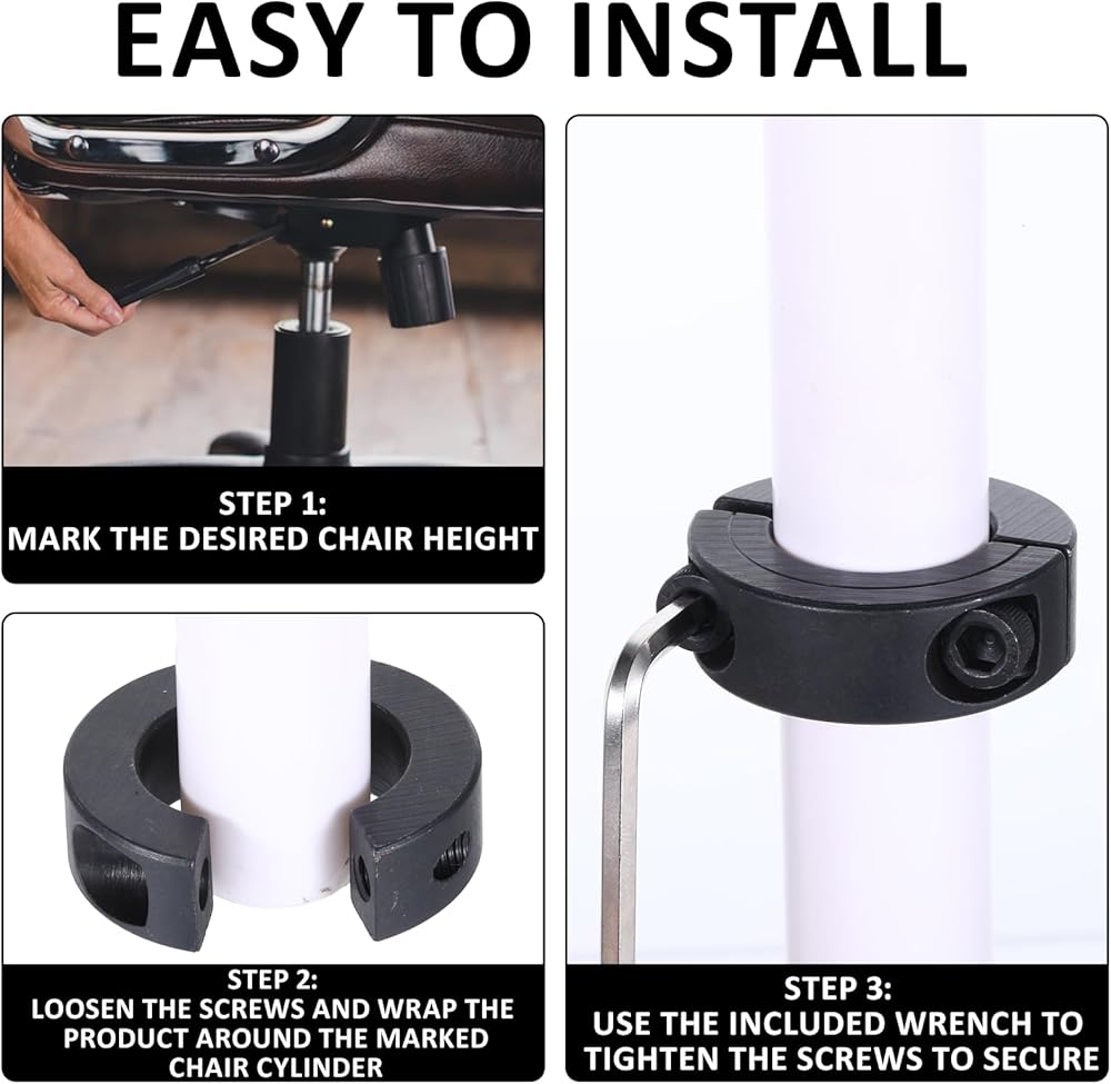 High-quality Construction: Crafted from premium carbon steel, our office chair cylinder replacement clamps offer enhanced durability and reliability. This high-quality material choice significantly outperforms plastic alternatives, providing a more robust, long-term solution to chair sinking.