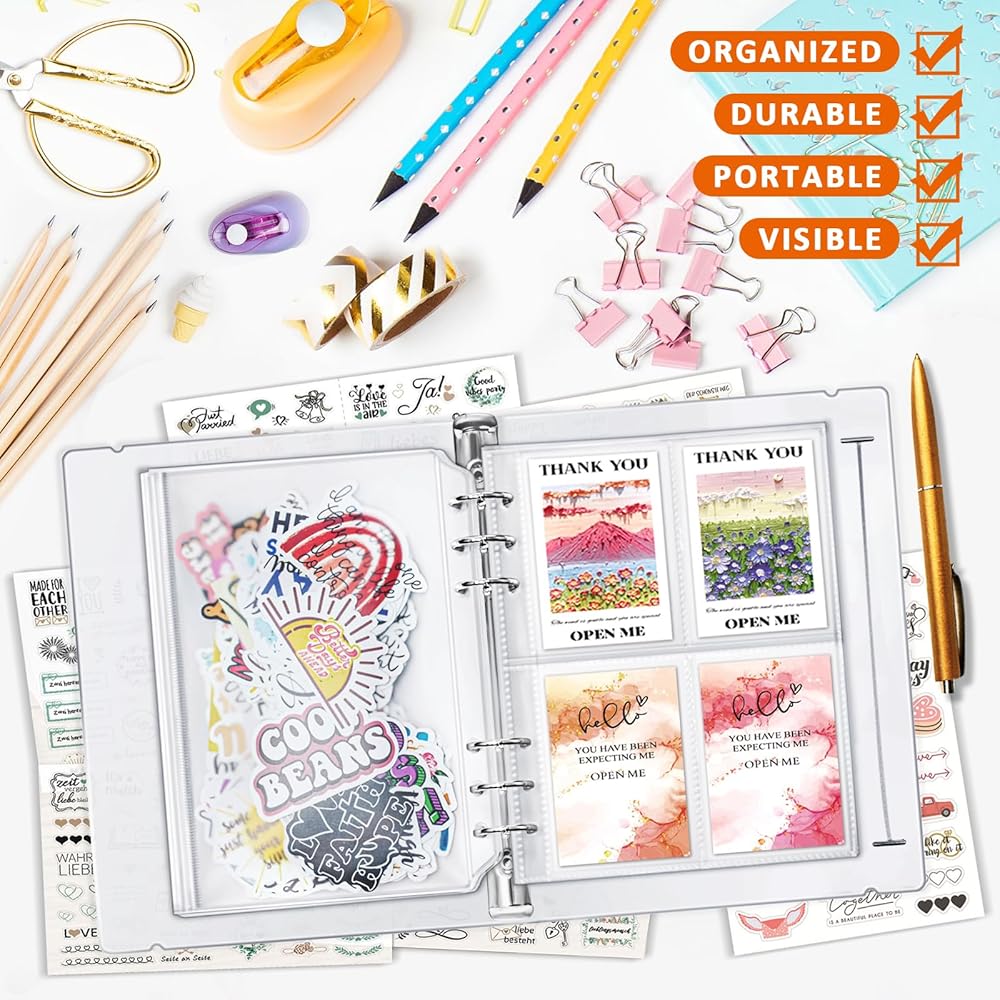 قوي ودائم: مصنوع من مادة PP السميكة ، تم تصميم هذا الألبوم الملصق للاستخدام طويل الأمد وقابلية النقل ، والوثق والصفحات الواضحة يجعل من السهل للغاية التقليب ومشاهدة جميع الملصقات.