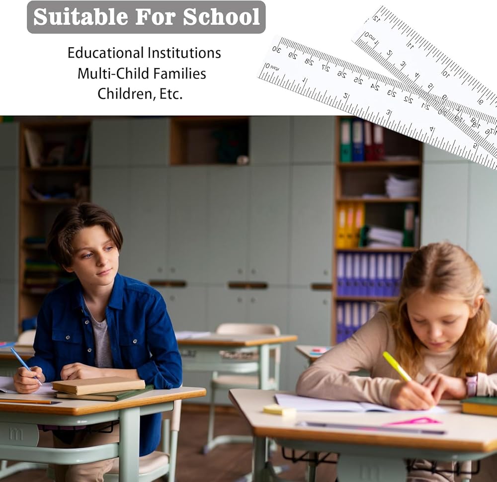 Premium Quality Material: Constructed from a high-quality, durable elastic plastic, these clear plastic rulers promise unmatched longevity and resilience, making them perfect for various settings from classrooms to professional offices. Feature a robust, shatter-resistant build that can flex without cracking or breaking. Easy-to-read markings ensure accuracy in every measurement, enhancing productivity and efficiency in any environment.