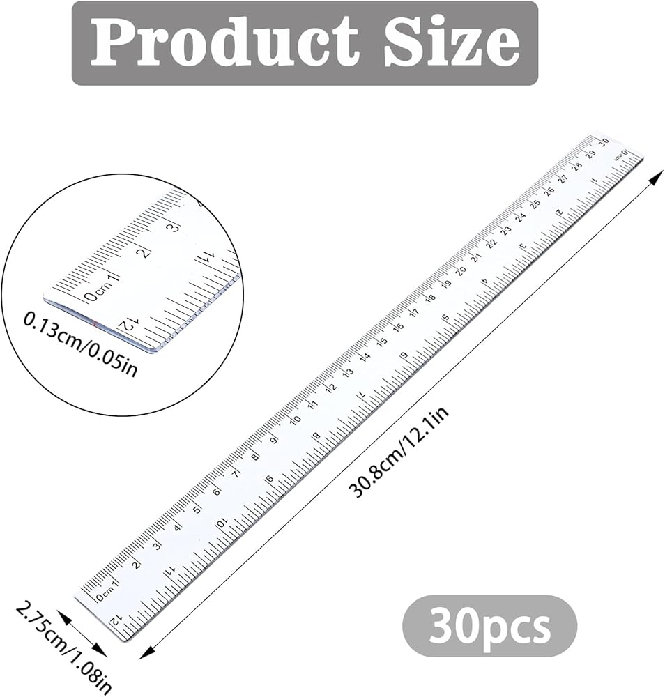 12-inch Clear Plastic Straight Ruler Set: Our ruler set offers excellent value by including 30 pieces of high-quality transparent rulers. Each ruler measures 12 x 1.1 inches in length and width. With a measurement range of up to 12 inches/30 cm, this set is perfect for classrooms, offices, or home use, providing a reliable and consistent tool for a variety of measuring tasks.