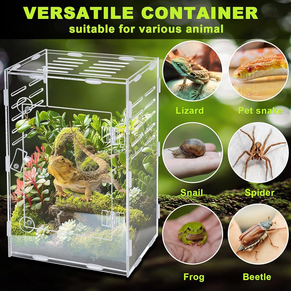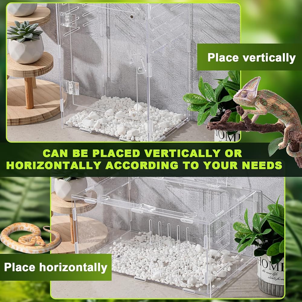 Our vertical terrarium is designed for easy assembly. You can quickly and effortlessly set up the box in just a few moments. This smooth and hassle free assembly sets our product apart from other terrariums, making it a preferred choice for reptile owners.
