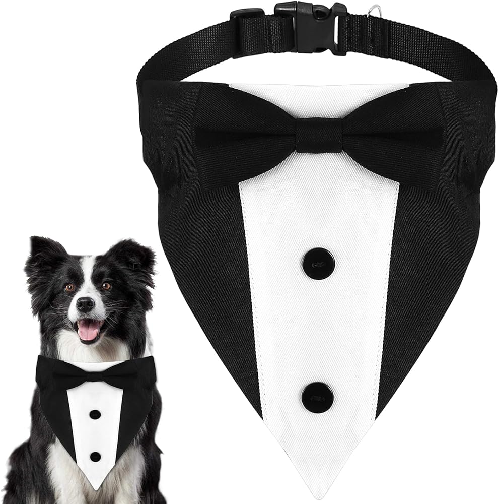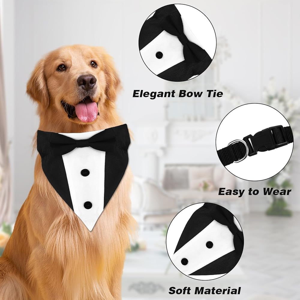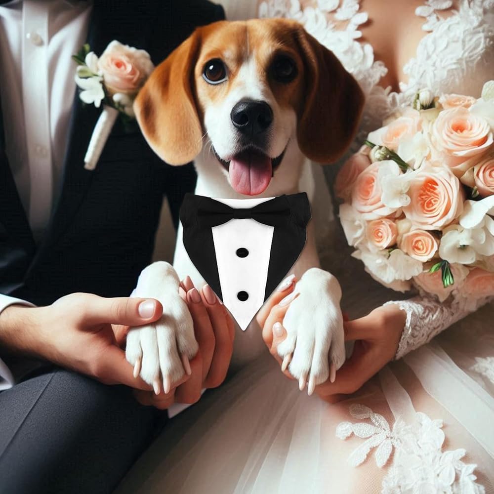 Qianyu Formal Dog Tuxedo Dog Wedding Bandana Collar Suit Outfit with Bow Tie Engagement Birthday Tuxedo Adjustable Dog Tux Formal Engagement Birthday Costumes for Small Medium Large Pets