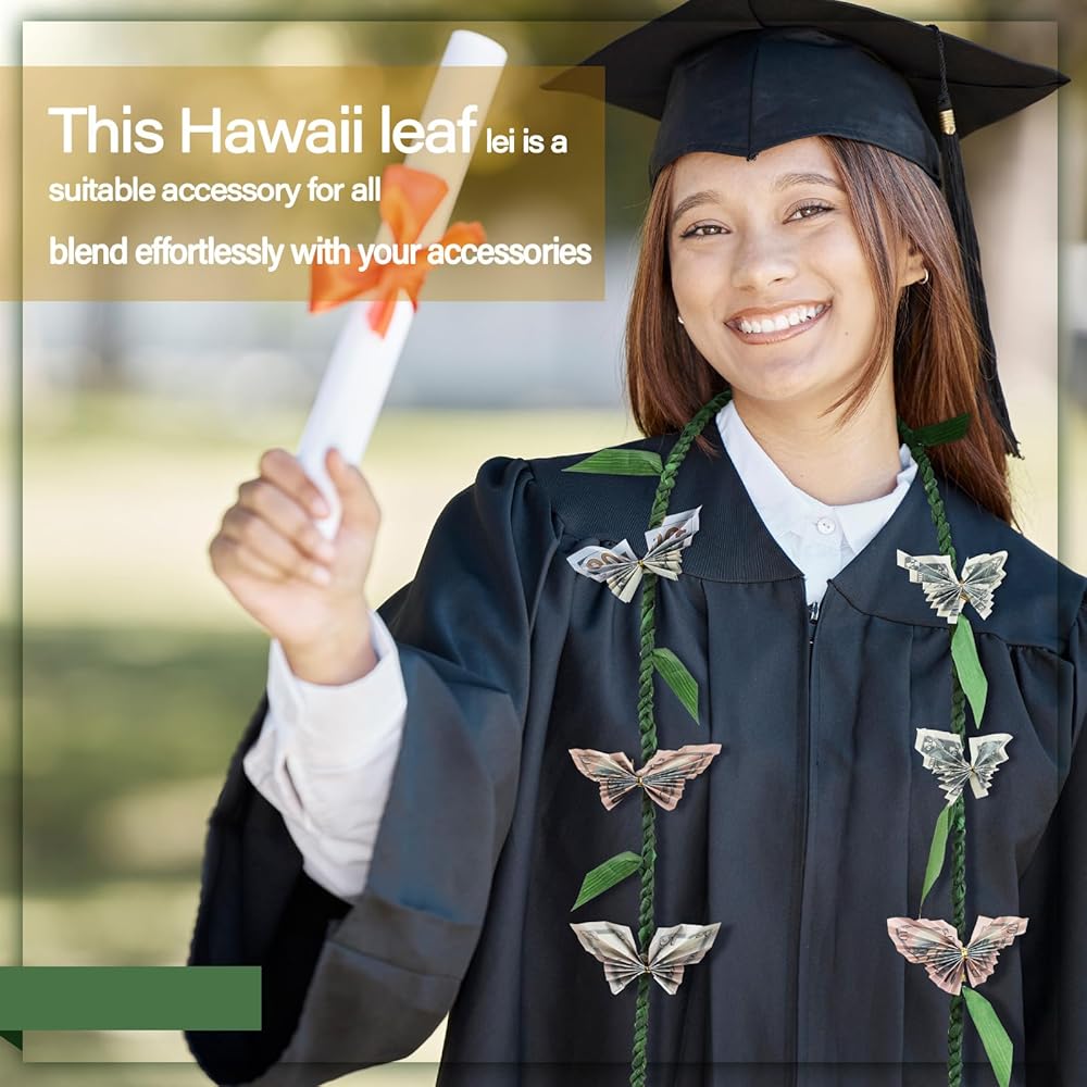 Occasion: this Hawaii leaf lei is a suitable accessory for all; The versatile design allows it to blend effortlessly with your accessories; Adding an innovative twist, it can also be DIY customized, such as incorporating cash for a special graduation gift