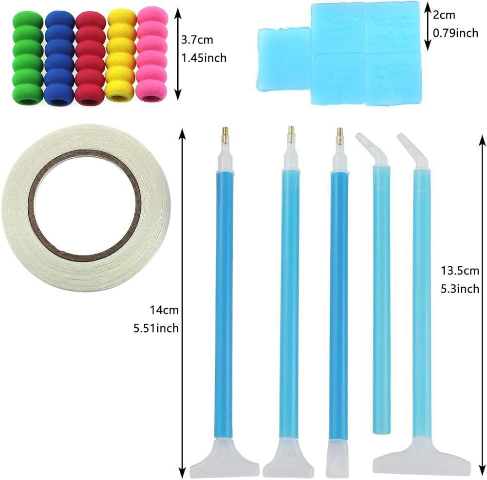 Comfortable to hold diamond paint diamond pens, ergonomically designed, and each pen comes with a different colour anti-fatigue pen cover, which can effectively reduce hand fatigue, allowing you to create art for a long time without feeling tired.