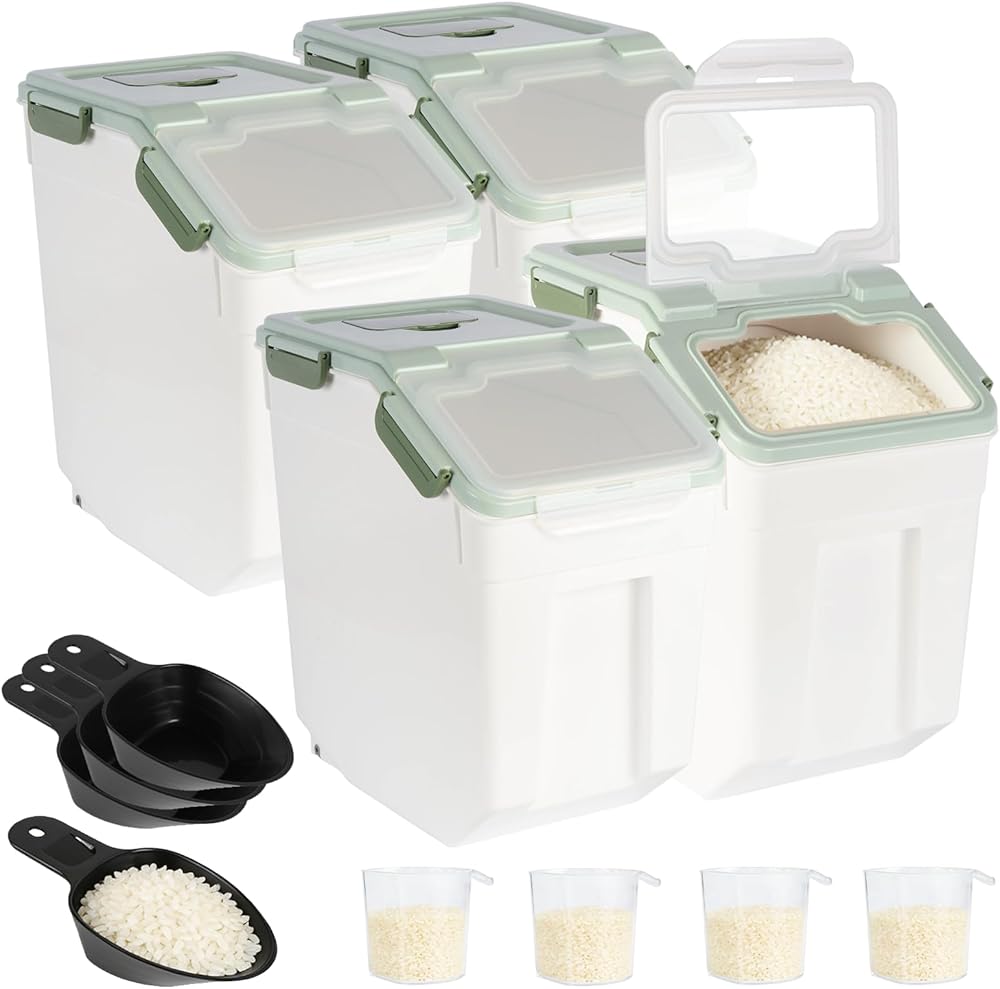 استخدامات واسعة: يمكن تطبيق سلة تخزين المكونات في المطبخ والمخزن لتخزين فول الصويا أو الذرة أو الحبوب الأخرى ؛ يمكن أيضًا تطبيقها لتخزين أغذية الحيوانات الأليفة ، مثل القطط والكلاب والطيور ، وما إلى ذلك ، والتي يمكن أن تحتوي على حوالي 30 رطلاً من الأرز أو 15 - 25 رطلاً من طعام الحيوانات الأليفة الجاف (تعتمد السعة المحددة على شكل الكلب طعام).