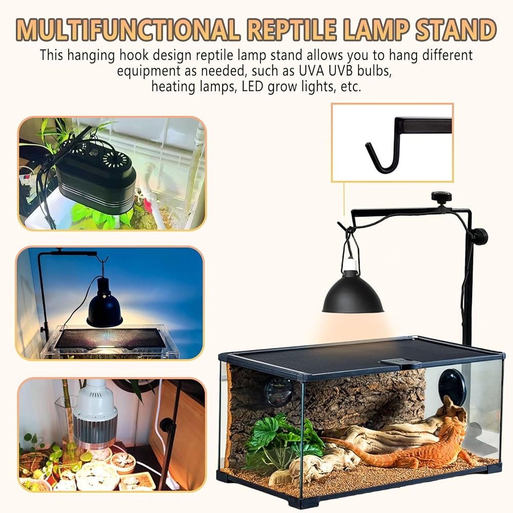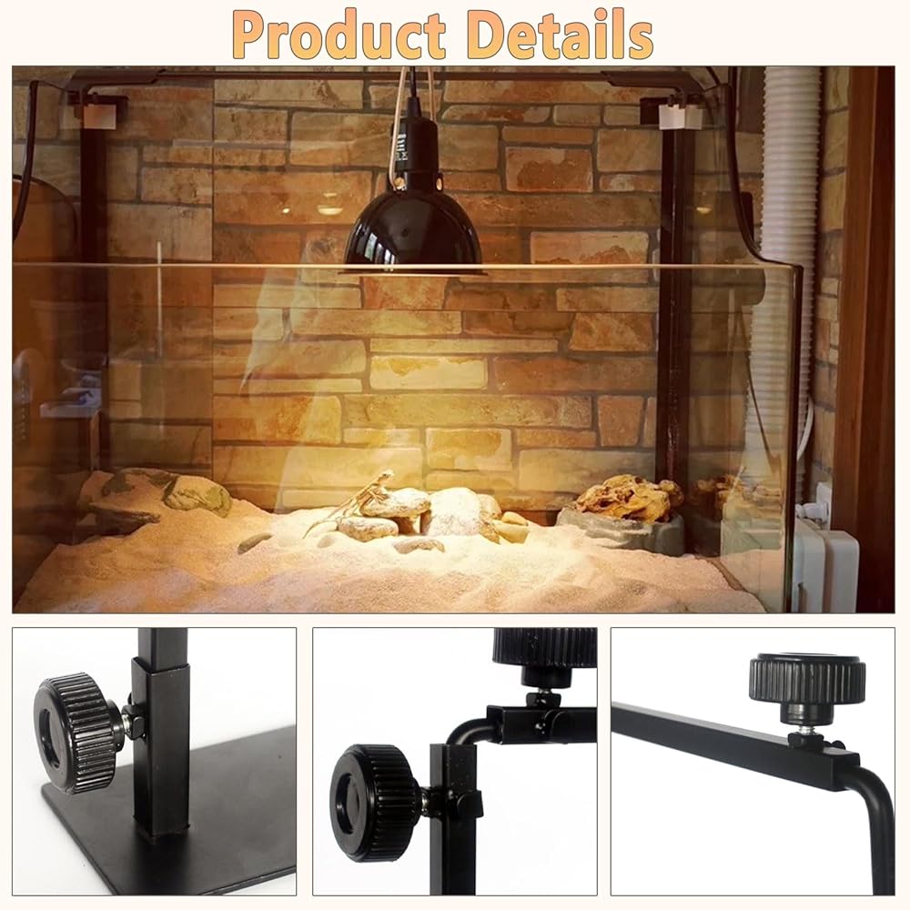🐍 التصميم الوظيفي: يمكن أن يستوعب حامل مصباح الزواحف لدينا مصابيح ذات ارتفاعات مختلفة وتعليقها بشكل آمن فوق الحاوية الزجاجية. يتميز الحامل بأخدود سلك مدمج للحفاظ على الأسلاك مضمونة بدقة. يمكن ضبط العرض والارتفاع باستخدام مسامير الدوران للراحة. كما أنه قابل للفصل لسهولة التخزين.