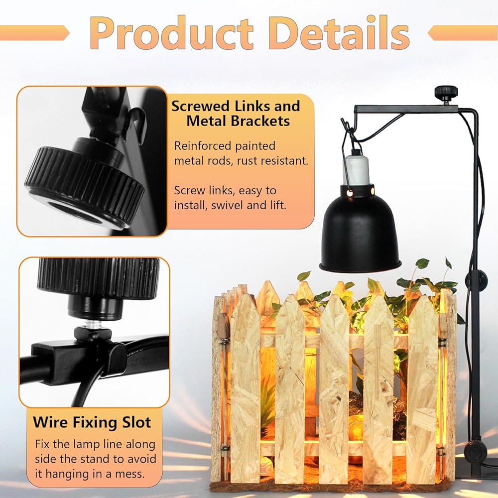 🐢sturdy ودائم: يتكون حامل مصباح تسخين الزواحف القابل للتعديل من المعدن عالي الجودة ، ومقاوم للتشوه والصدأ والمصمم حتى يستمر لسنوات. يمكنك بسهولة تثبيت مصباح التدفئة ومعدات الإضاءة على الحامل وضبط الارتفاع والموضع بحرية لتوفير بيئة إضاءة مريحة للزواحف الخاصة بك.