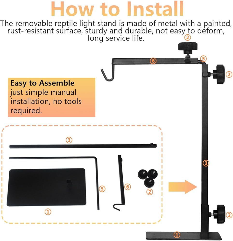 🦎isyiss للتثبيت: من السهل تجميع حامل مصباح الزواحف هذا مع التثبيت اليدوي البسيط ، ولا توجد أدوات مطلوبة. للحفاظ على الاستقرار ، يوصى بإدخال القاعدة في أسفل حوض السمك الزواحف أو وضع وزن في الأعلى.