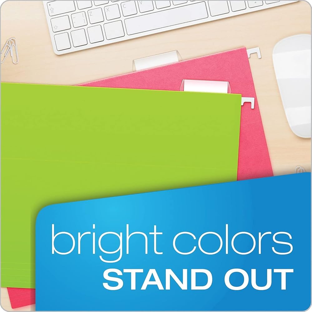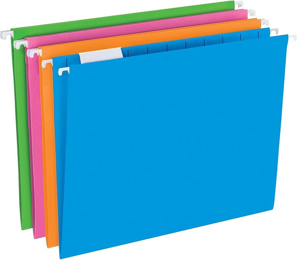 Organize your documents in style with our Neon Hanging File Folders. These folders are perfect for adding a pop of color to your filing system, making it easy to identify and retrieve important papers. Designed for letter-sized documents, each folder is constructed from durable materials to withstand daily use. The 1/5 cut tabs offer flexible labeling options, allowing you to customize your filing system to suit your needs. Whether you're organizing your home office, schoolwork, or business documents, these vibrant folders are both functional and fun. The assorted neon colors (green, pink, blue, yellow, and orange) not only brighten up your workspace but also help you color-code your files for better organization. With 25 folders in each box, you'll have ample storage to keep your documents tidy and accessible.