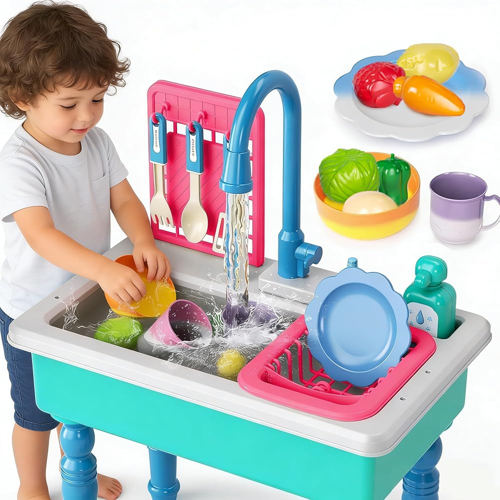 تلعب بالوعة المطبخ الواقعية: مثالي لكل من الأنشطة الفردية والمجموعة ، تشجع لعبة المطبخ المطبخ التفاعلية لدينا على لعب الأدوار الخيالية. سيعزز الأطفال مهارات التعرف على الألوان ويصبحون على دراية بأدوات المطبخ الشائعة مثل الفواكه والخضروات ، مع تحسين تنسيقهم وقدراتهم التنظيمية