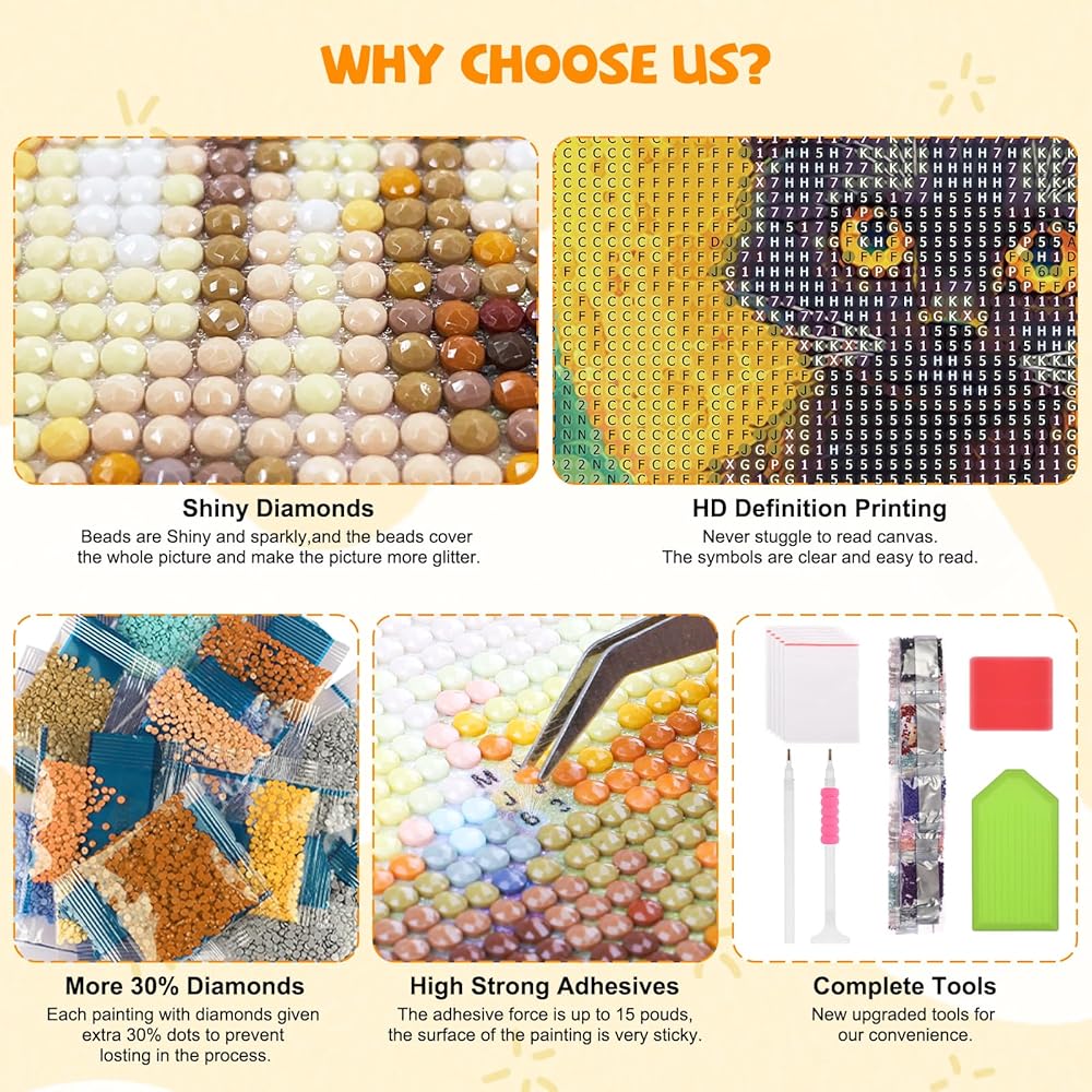 • إحساس قوي بالإنجاز: إكمال مجموعة فن الماس اليقطين يجلب إحساسًا هائلاً بالإنجاز والرضا. إن الشعور بالفخر والوفاء لا مثيل له وأنت تتراجع وتعجب بالنتيجة النهائية ، مع العلم أن كل التفاصيل المتلألئة هي شهادة على صبرك وإبداعك والعمل الشاق. هذه التجربة المجزية لا تعزز الثقة فحسب ، بل تشجعك أيضًا على تولي مشاريع جديدة وأكثر صعوبة في المستقبل.