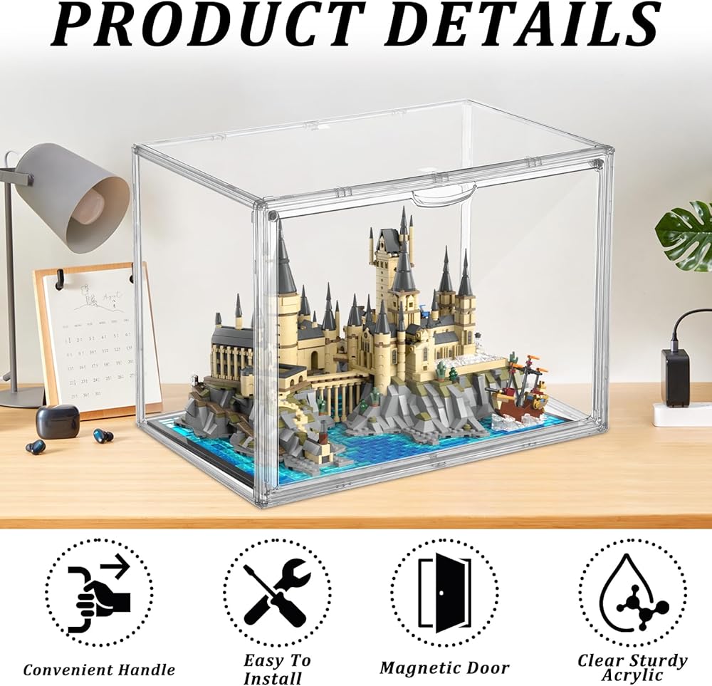Versatile Display Purpose: The display case for display is perfect for showcasing castle building models, sports memorabilia, toys, figurines, action figures, collectibles, statues, and sculptures. This acrylic display box can also double as a stylish storage solution for home decor items. It makes a unique and thoughtful gift for friends or family who like to collect bricks and models.