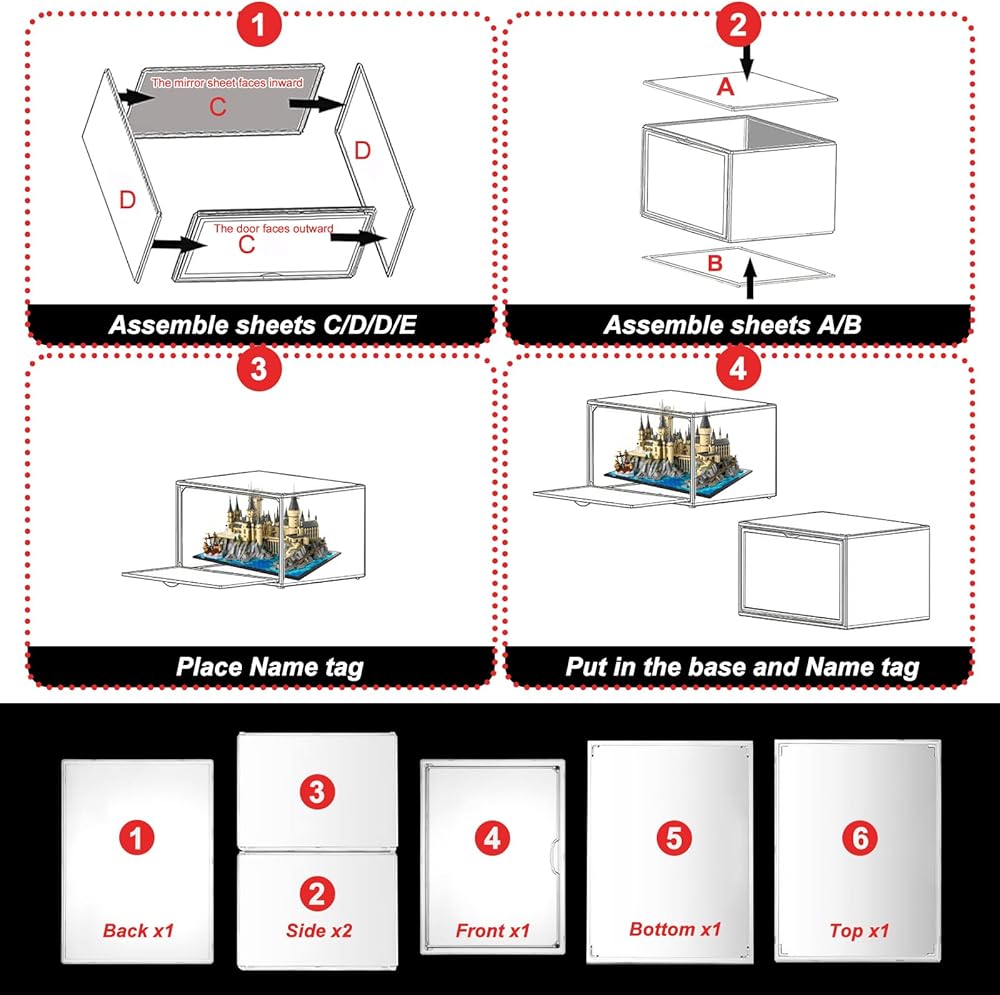 Easy Assembly: No screws or glue are required to assemble this acrylic boxes for display. Simply peel off the protective film from the acrylic panels and follow the instructions to connect the panels for a quick and hassle-free setup.