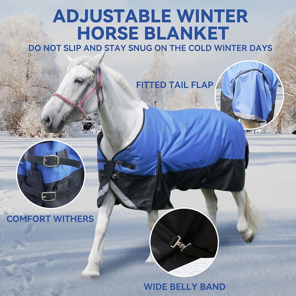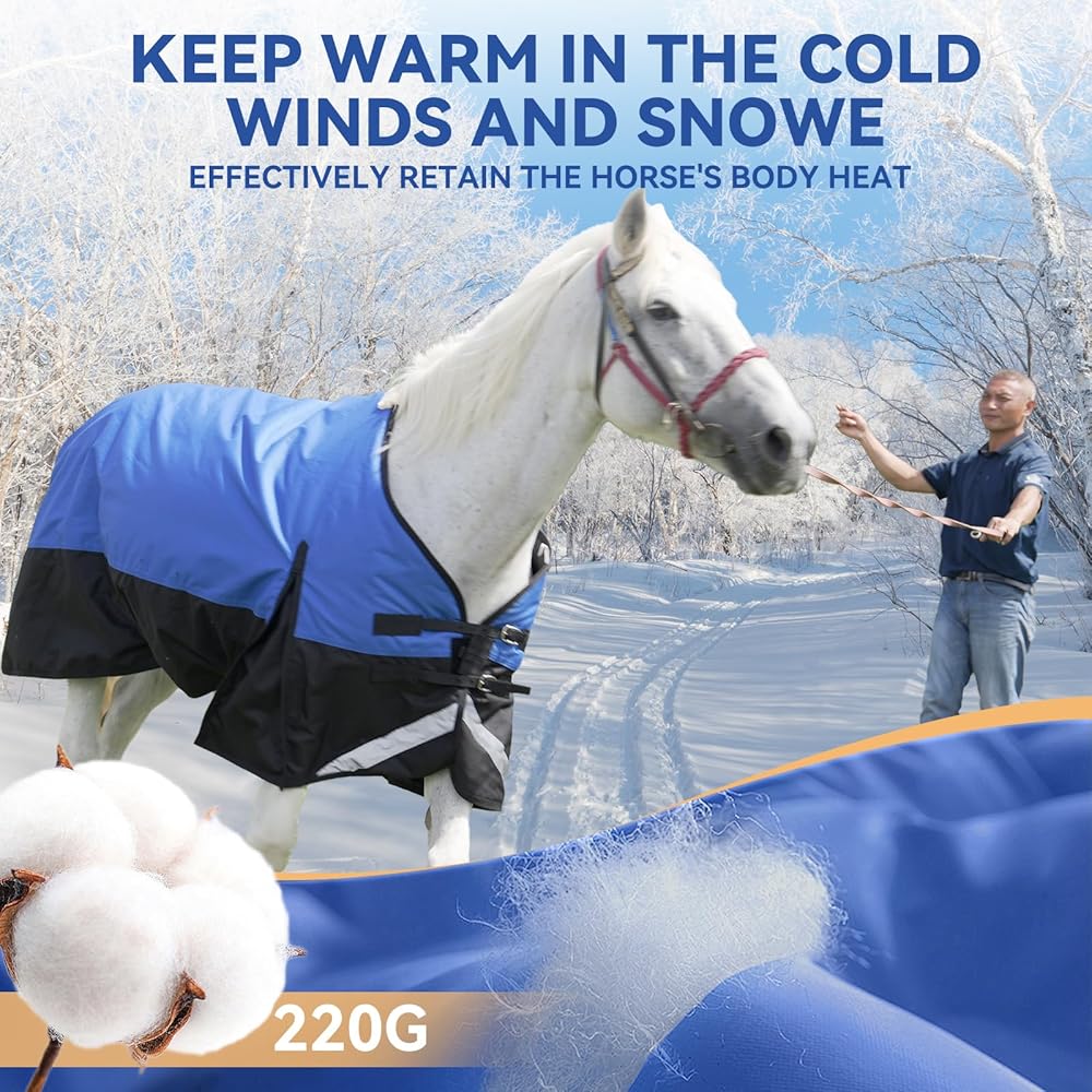 بطانية شتوية 72 "شتاء ، 1200D مقاوم للماء ، بطانية إقبال على الحصان ، بطانية سميكة مقاومة للدموع مع حشوة 220 جرام ، بطانيات إقبال دافئة قابلة للتنفس للحصان