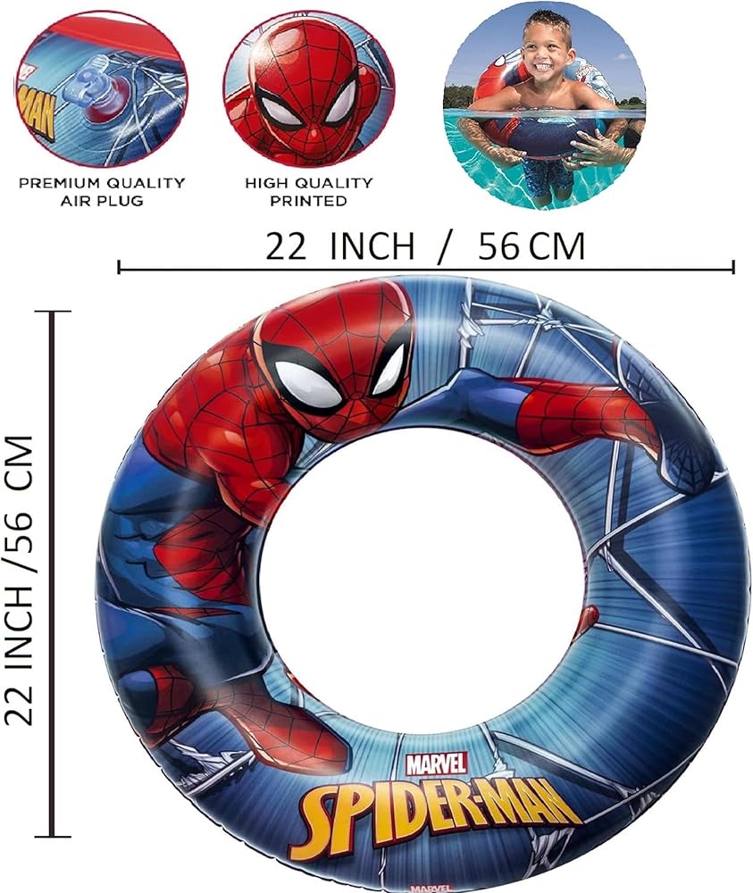 Bestway Marvel Spiderman Swim Tube - مسبح ممتع تطفو للأطفال (الأعمار من 3 إلى 6) - 56x22 سم ، أنبوب السباحة تحت عنوان Marvel ، حلقة السباحة للأطفال من أجل الماء