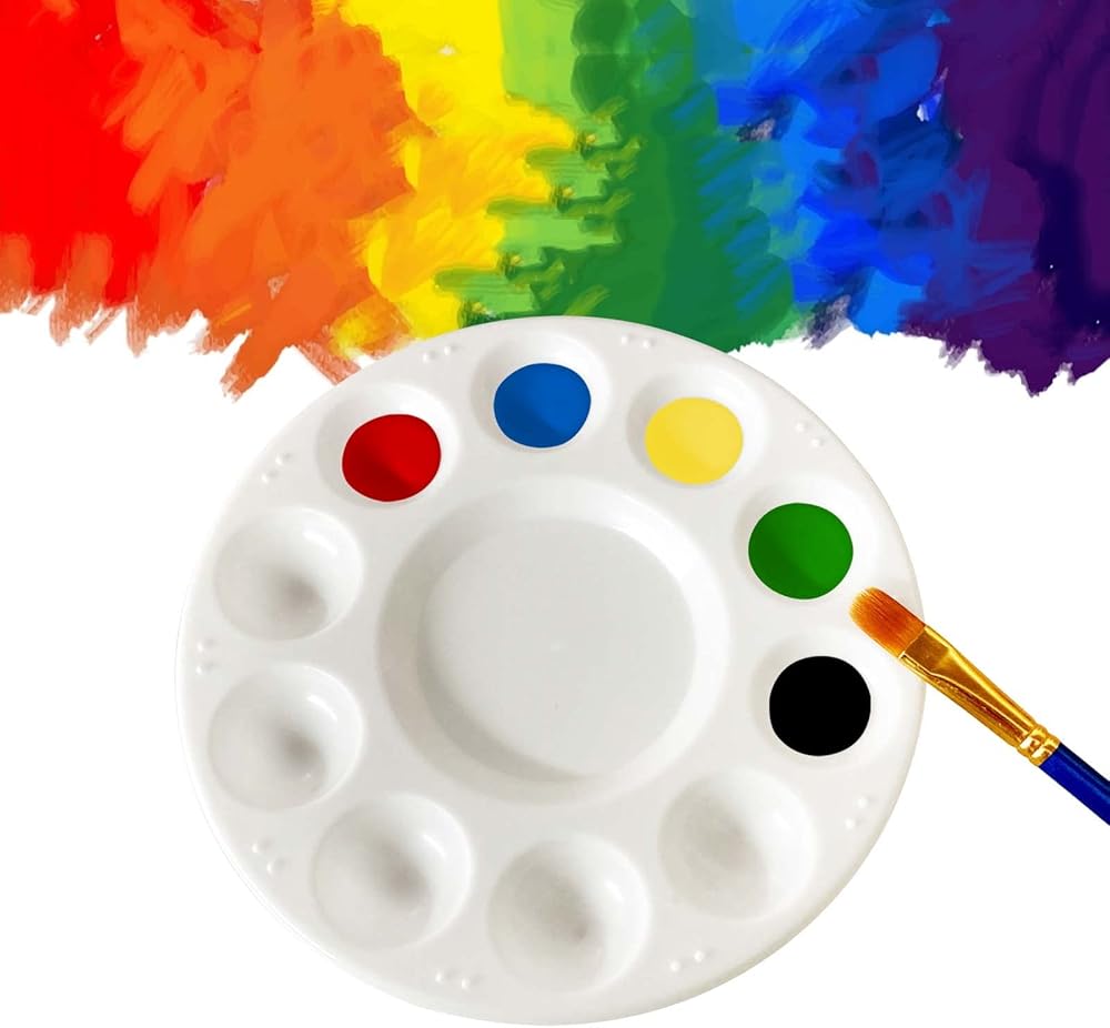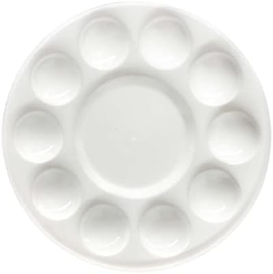 4 Pack round color palettes, 17 cm diameter, reasonable layout, containing 10 holes and 1 reservoir, the appropriate depth is convenient for using paintbrushes to get paint.