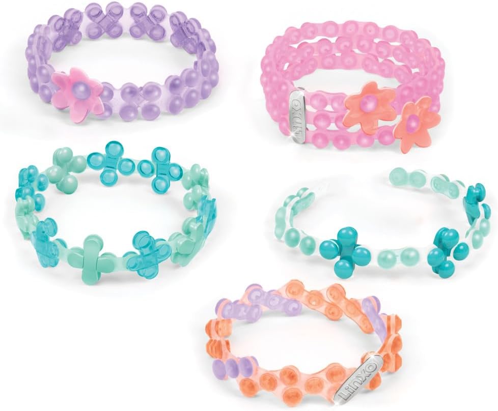 DIY 5 BRACELETS: Build five flexible & stylish bracelets using the LinXo construction system. Tweens can assemble and customize their own seaside-inspired jewelry with connectable pieces.