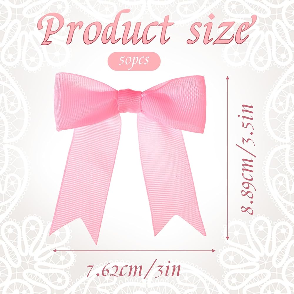 Sufficient Quantity: You will get 50 pink satin ribbon bows, size is about 3 inches, they will look elegant and beautiful when you use them to decorate gifts. The sufficient quantity is enough to meet your gift decoration needs, and you can also use them for handicrafts and bundled packaging, each bow is carefully handmade and well packaged.