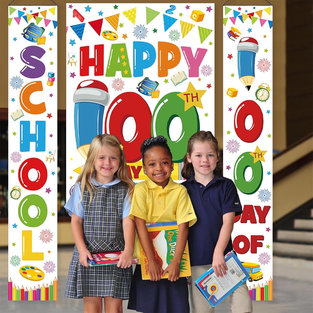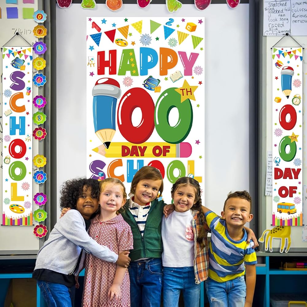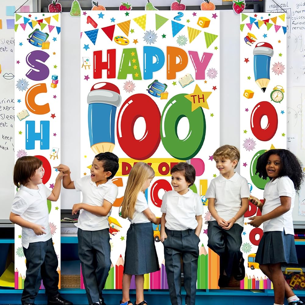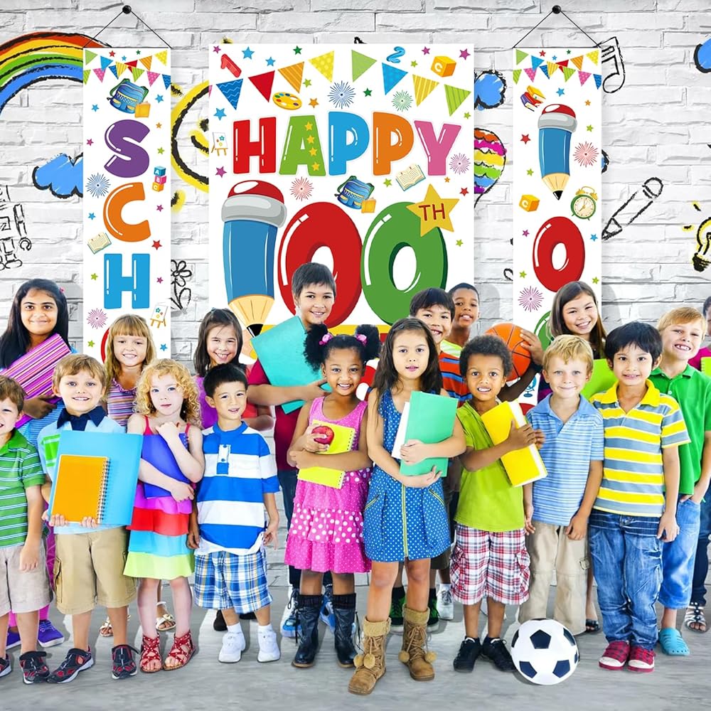 اليوم المائة من الزخارف المدرسية ، اليوم السعيد لافتة المدارس 100 يوم خلفية المدرسة الخلفية السعيدة 100 يوم الدعائم المدرسية للمدرسة الابتدائية لمرحلة ما قبل المدرسة في رياض الأطفال