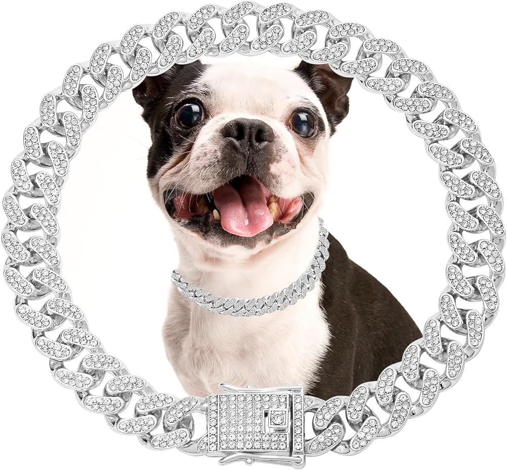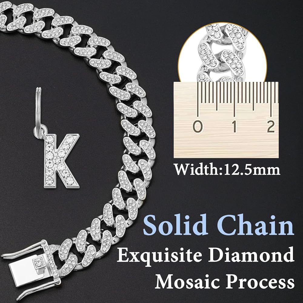 Cuban Link Collar Size: Chain Collar width: 12.5mm Collar length:8/10/12/14/16/18/20/22/24/26inch The dog collar chain is not adjustable, please measure the size of your dog's neck,add about 0.5-1 inches.