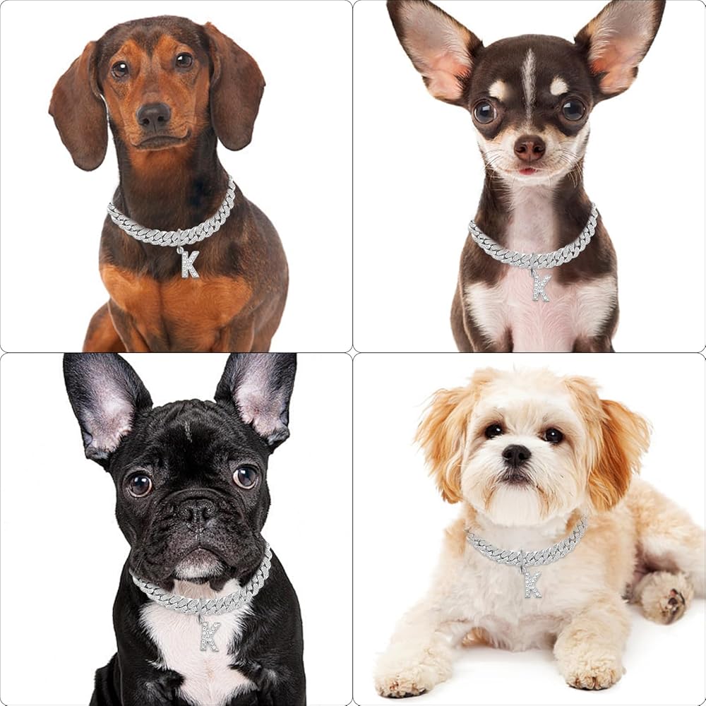 Cuban Collars set: Necklace Collar *1 and Pendant K *1. This is a decoration pet necklace, please don't pull it hard.