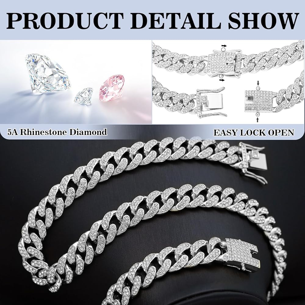 High quality Material: The dog chain collars is made of quality zinc alloy with zirconia diamond.
